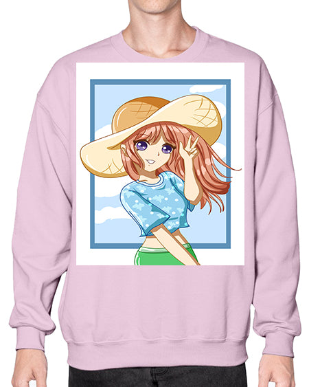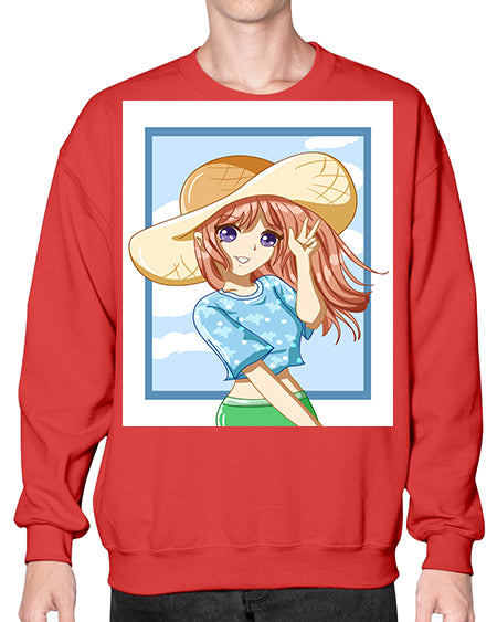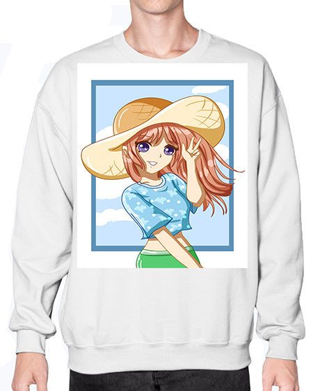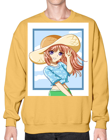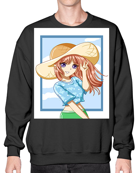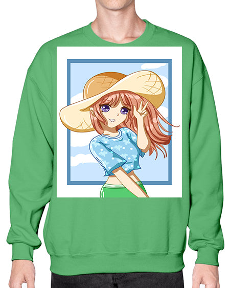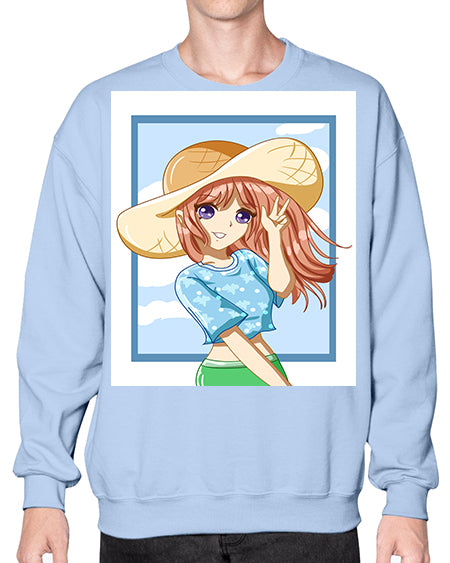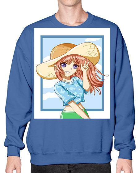 Beautiful and happy girl with blue shirt in summer 51# - anime- Sweatshirt - Crew