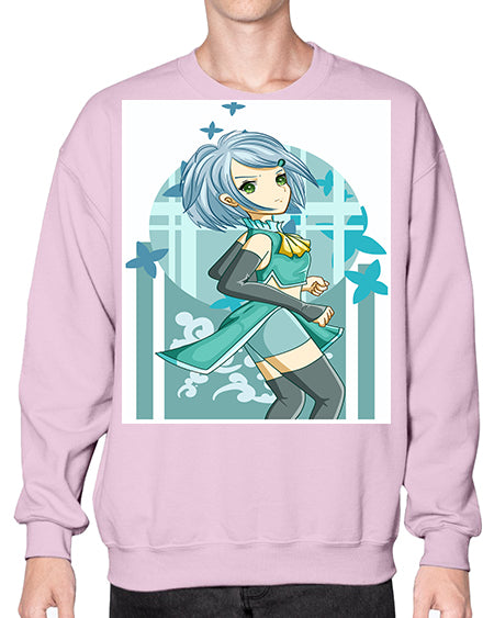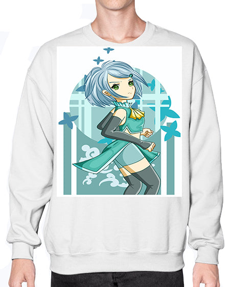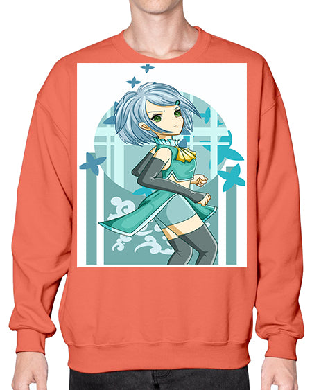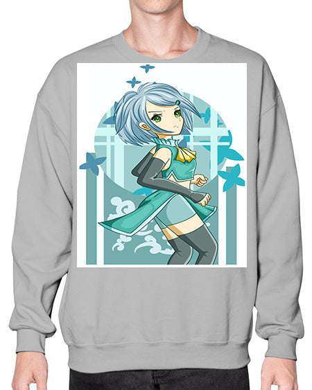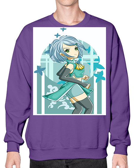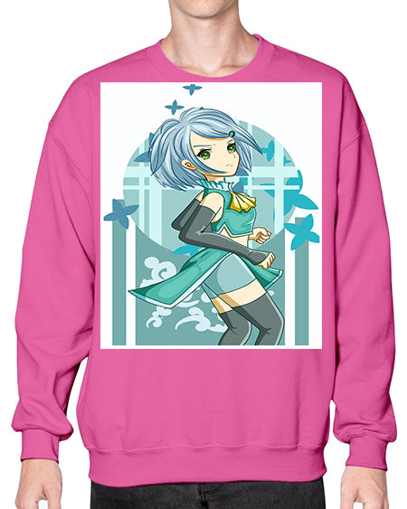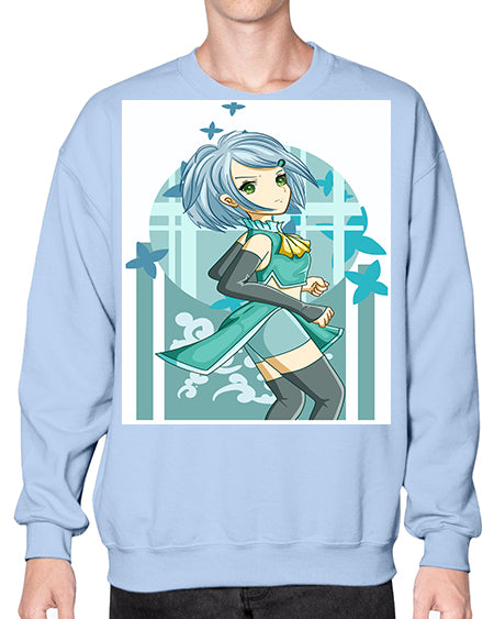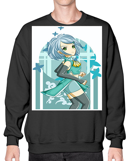 Beautiful girl blue hair with green clothes 161# - anime- Sweatshirt - Crew