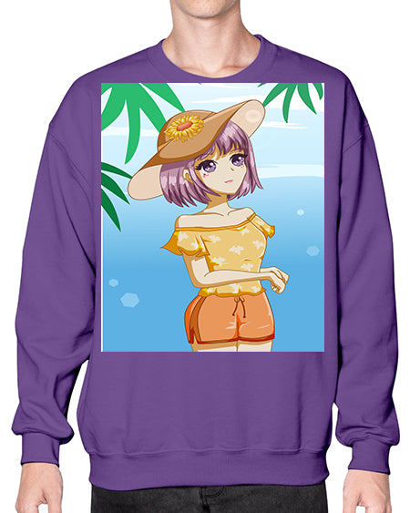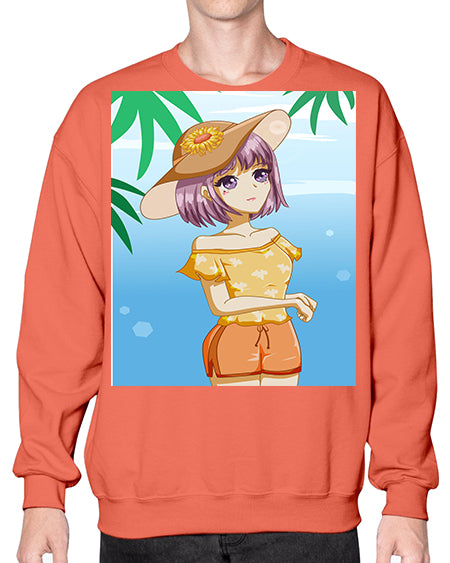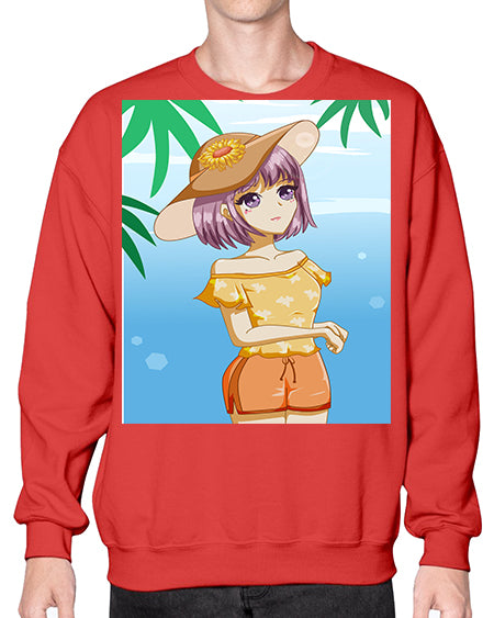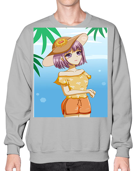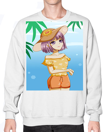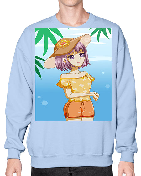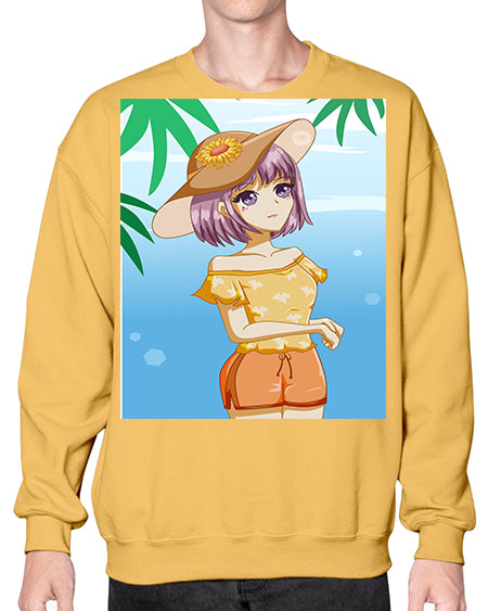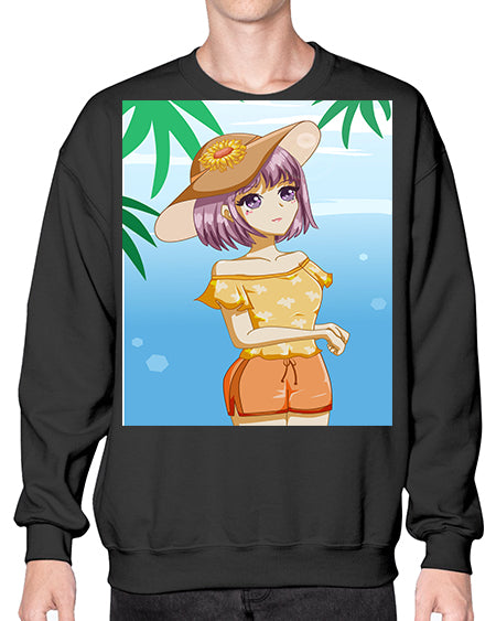Beautiful girl in summer with sunflower 116# - anime- Sweatshirt - Crew