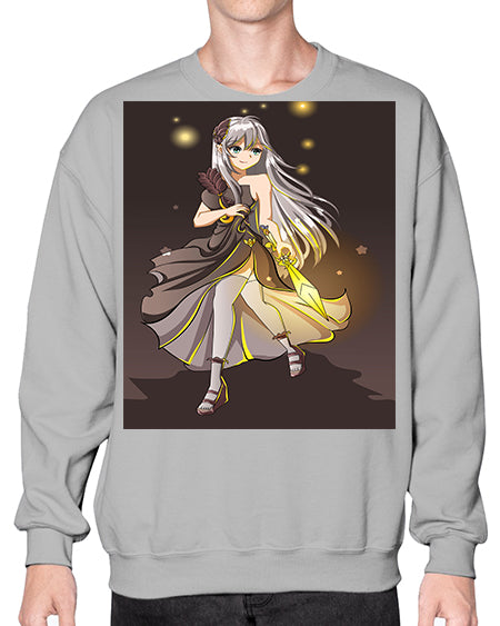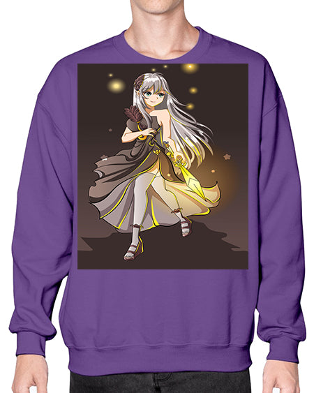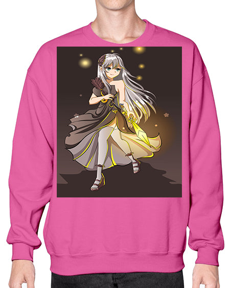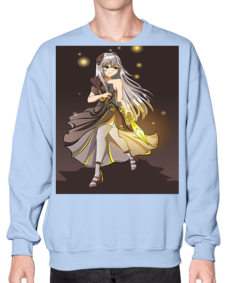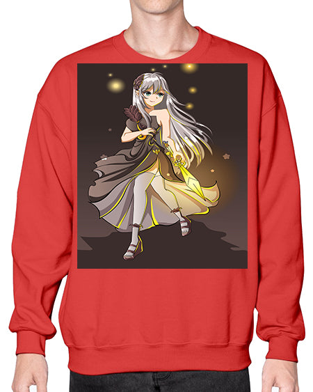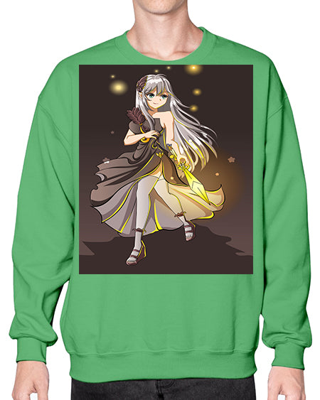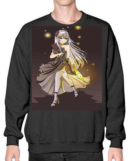 Beautiful girl with black dress and sword game 129# - anime- Sweatshirt - Crew