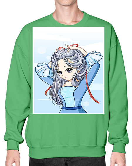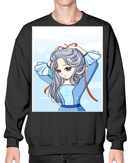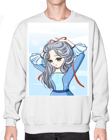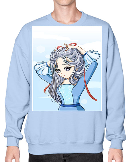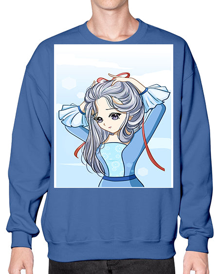 Beautiful princess silver hair with blue dress 120# - anime- Sweatshirt - Crew
