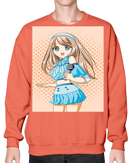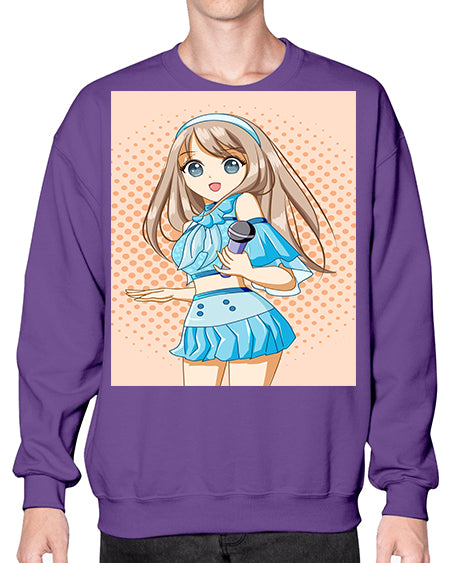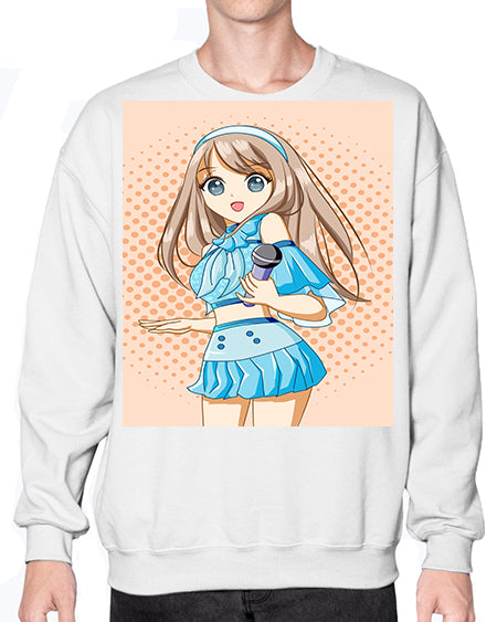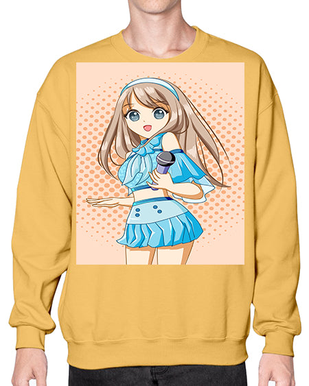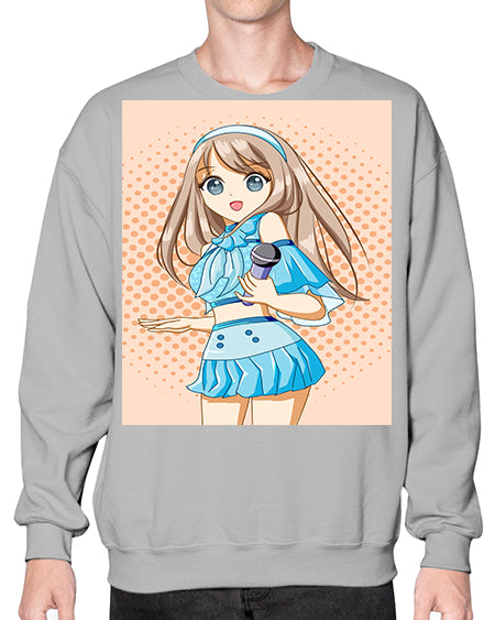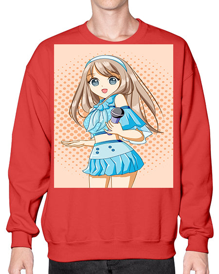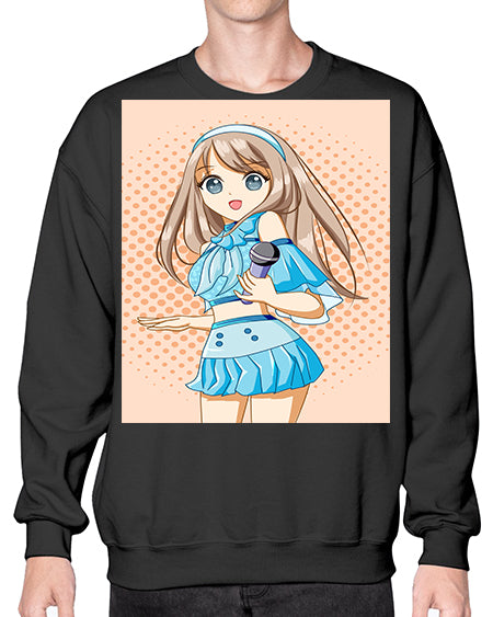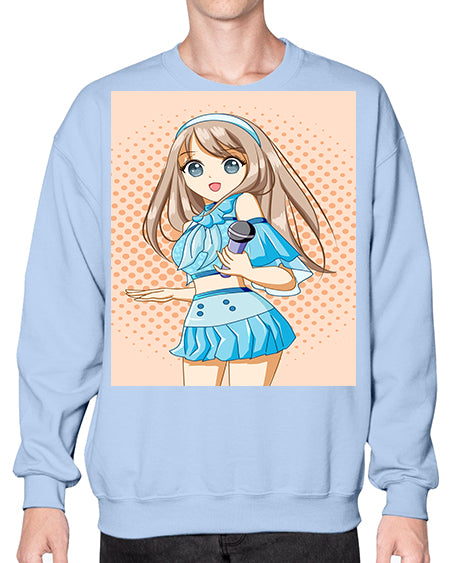 Beautiful singer woman with blue dress 179# - anime- Sweatshirt - Crew