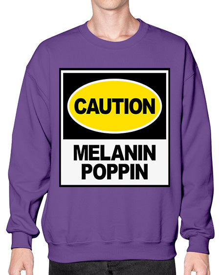 caution melanin poppin 188# - black words and phrases- Sweatshirt - Crew