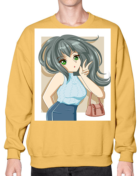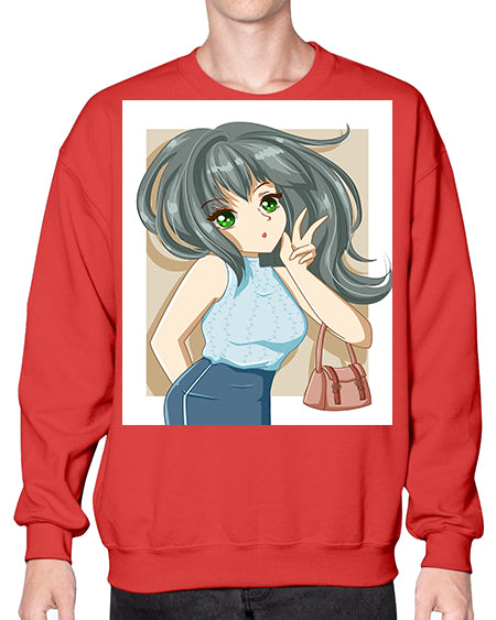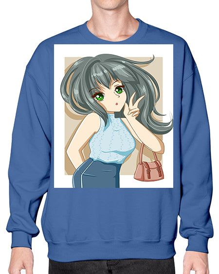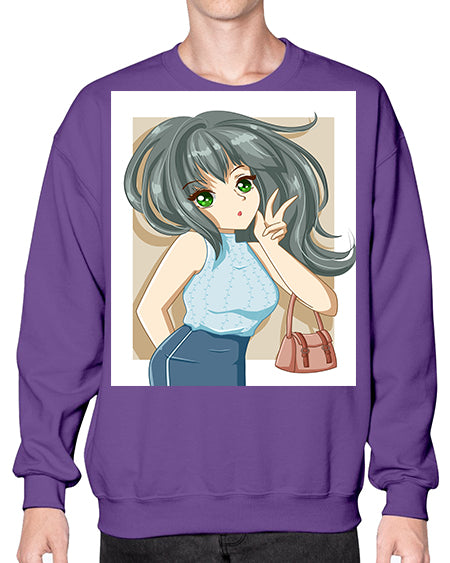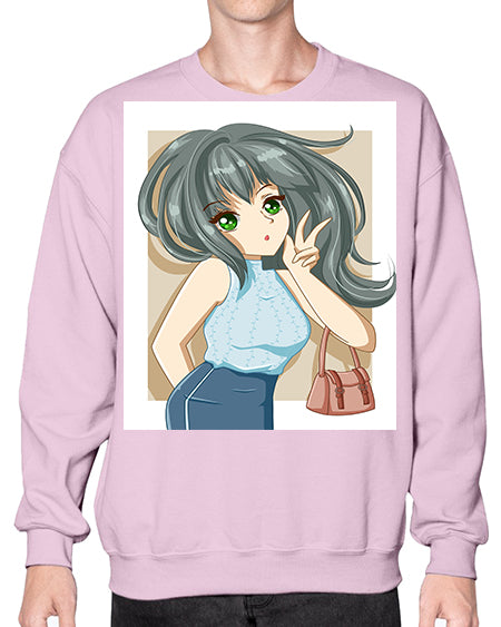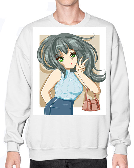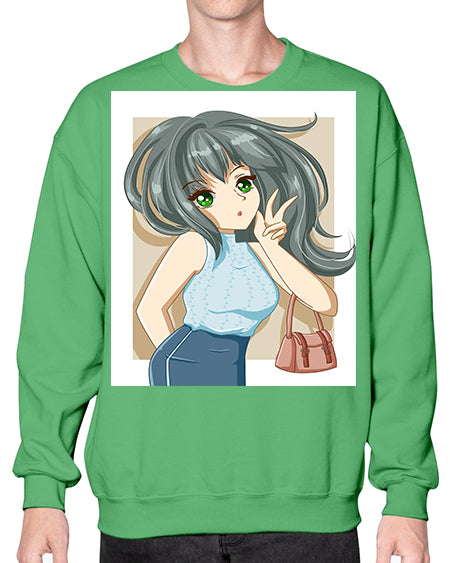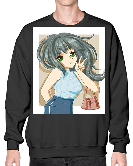 Cool and beautiful girl carry a fashion bag 96# - anime- Sweatshirt - Crew