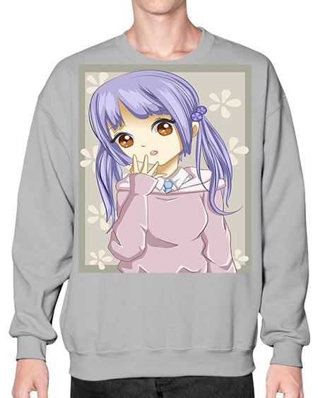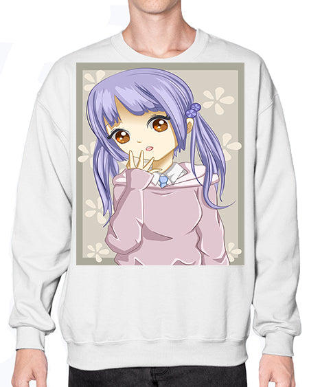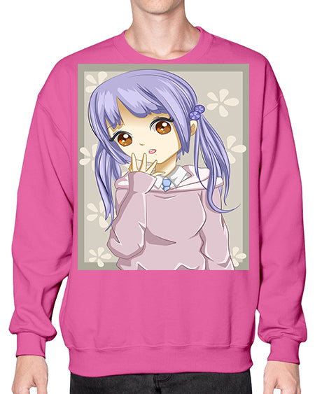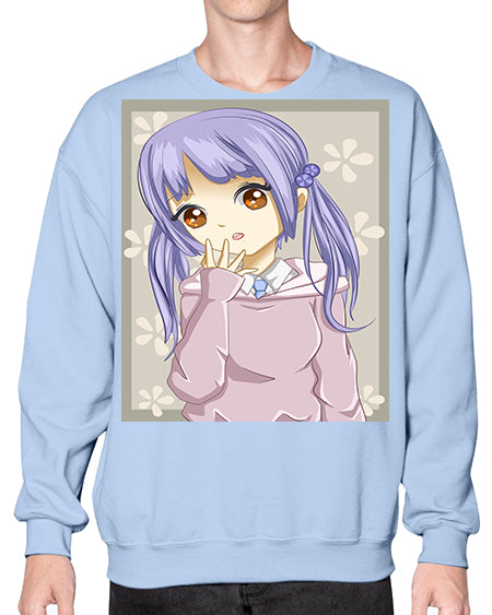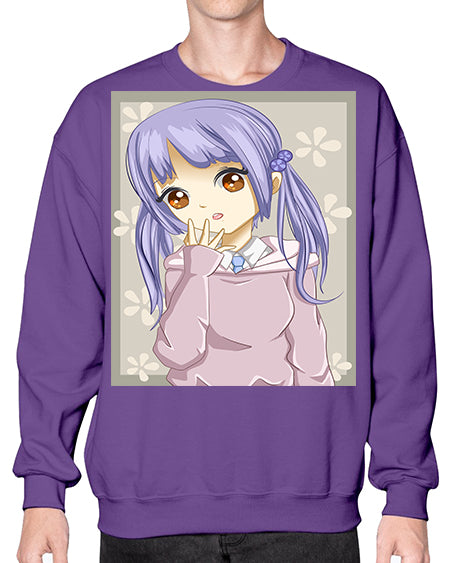 Cute and beautiful girl purple hair 25# - anime- Sweatshirt - Crew
