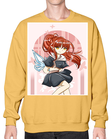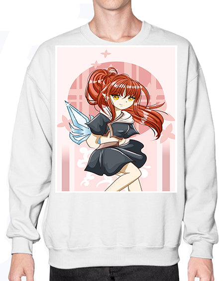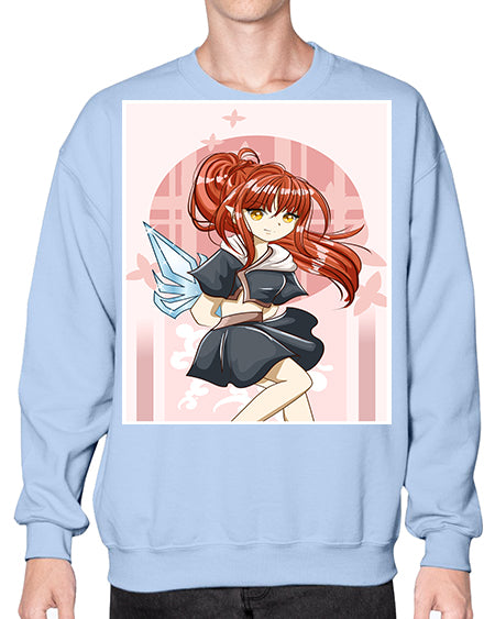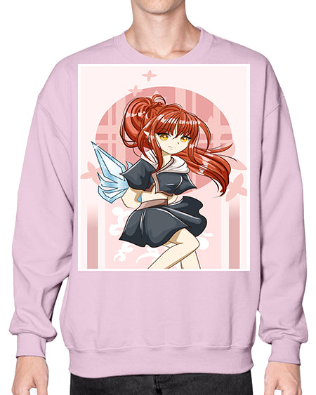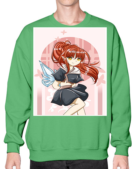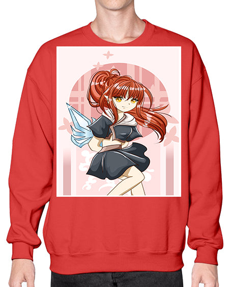 Cute and beautiful girl red long hair with sword cartoon 157# - anime- Sweatshirt - Crew
