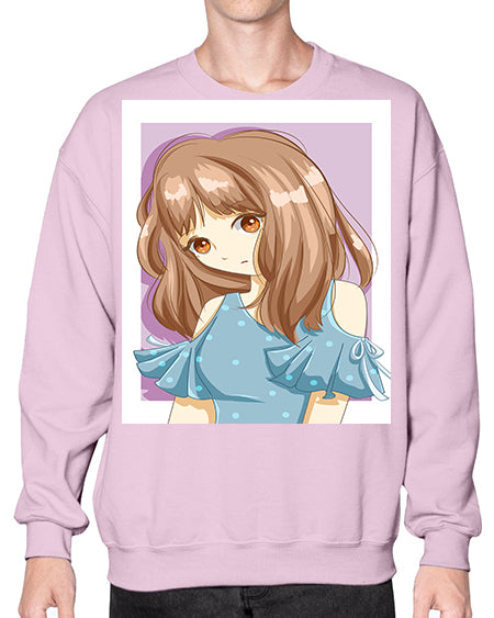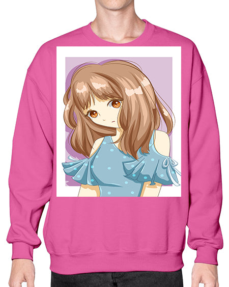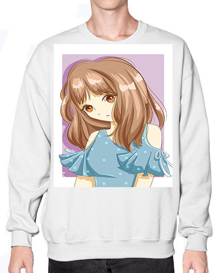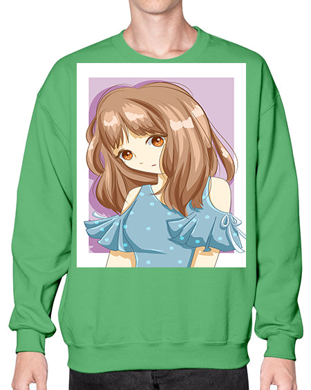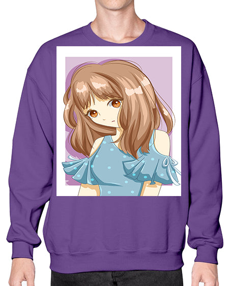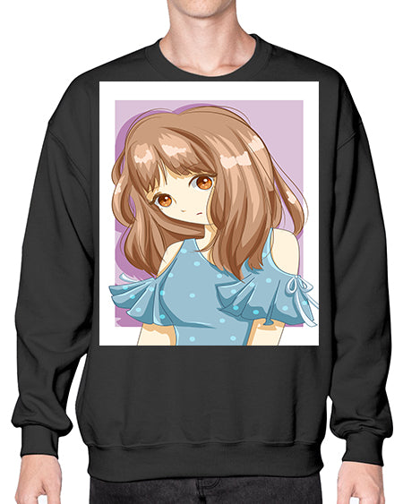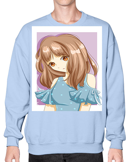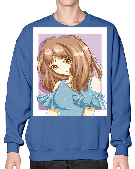 Cute and beautiful girl with blue blouse 101# - anime- Sweatshirt - Crew