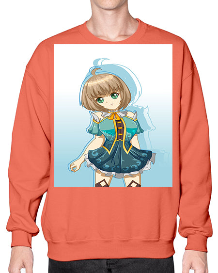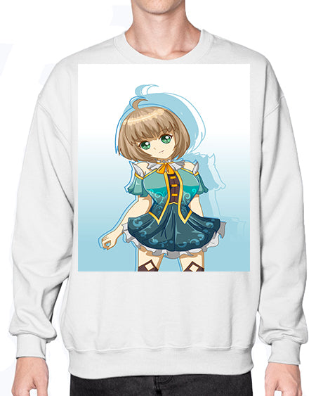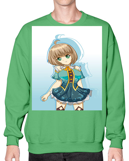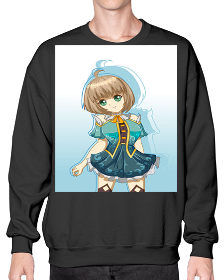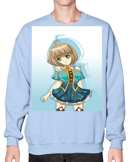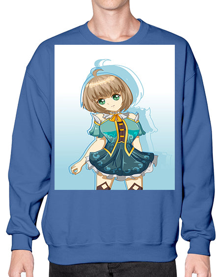 Cute and beautiful girl with blue dress game 22# - anime- Sweatshirt - Crew