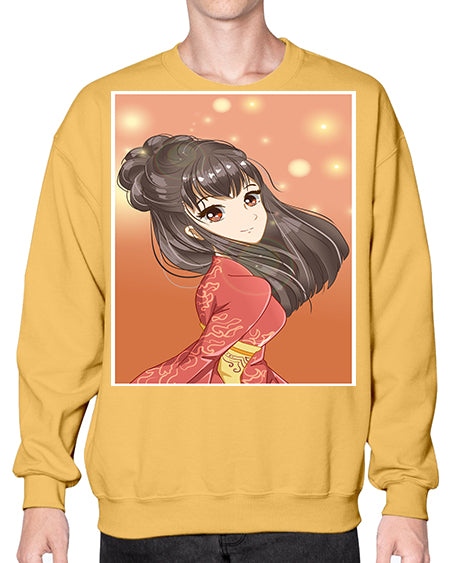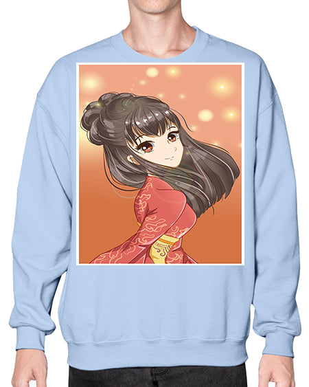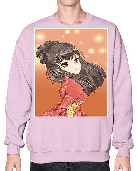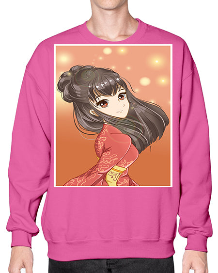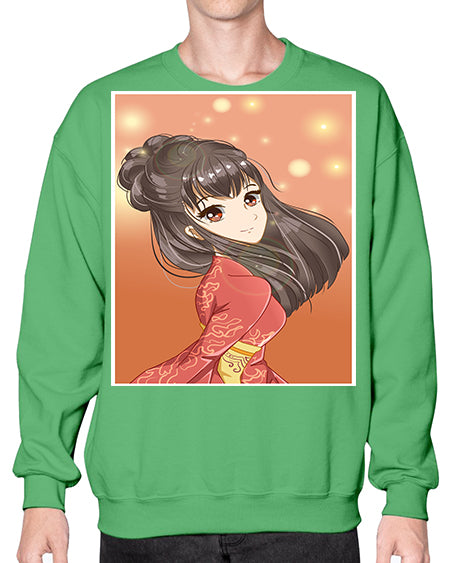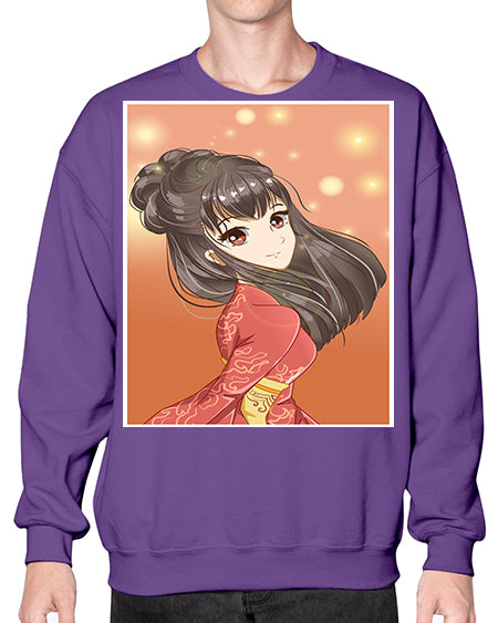 Cute and beautiful girl with red kimono 52# - anime- Sweatshirt - Crew