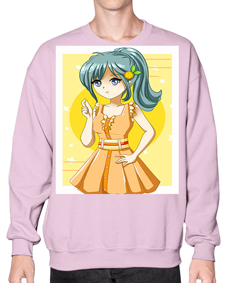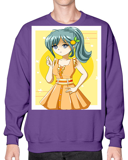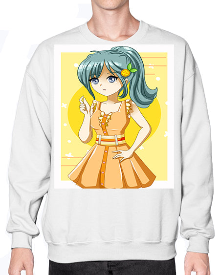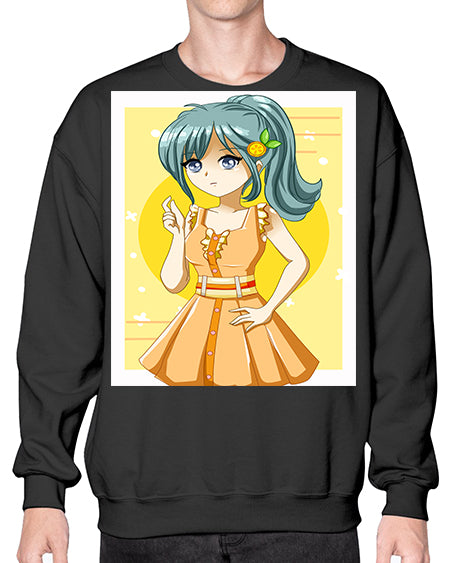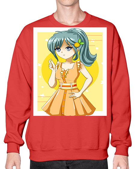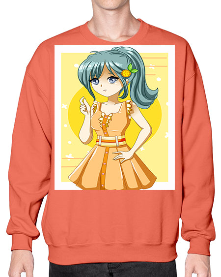 Cute and beautiful orange theme girl in summer 45# - anime- Sweatshirt - Crew