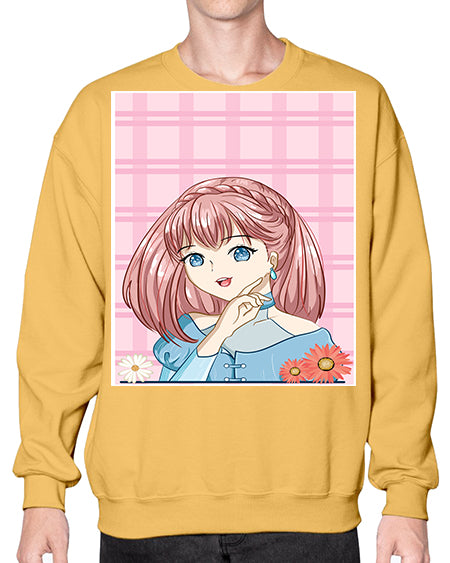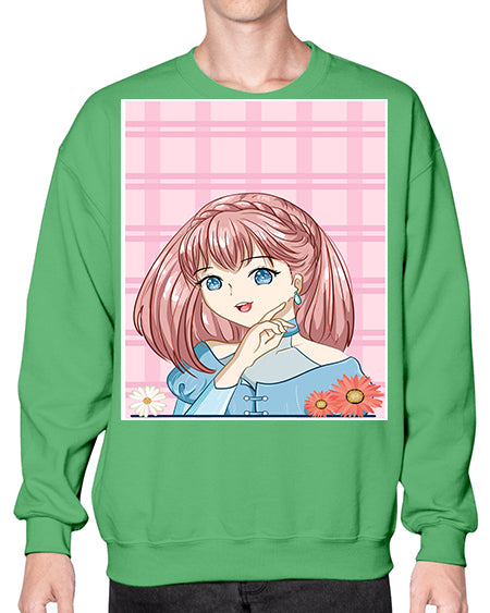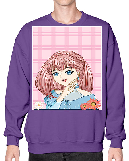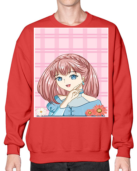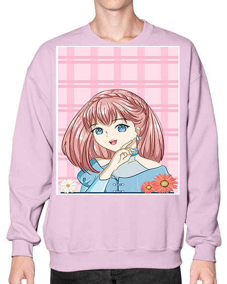 Cute and beautiful princess pink short hair 72# - anime- Sweatshirt - Crew