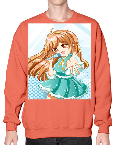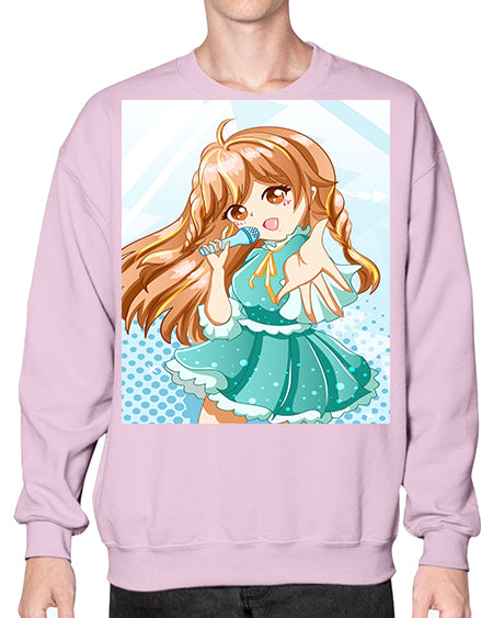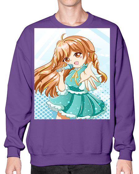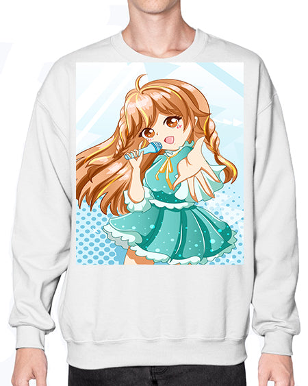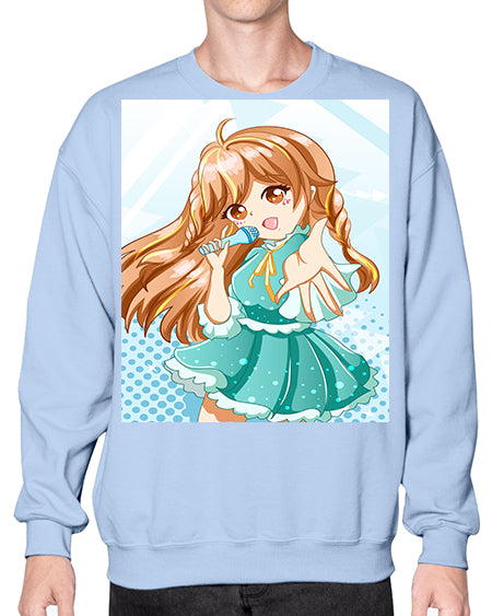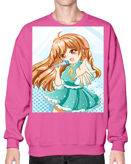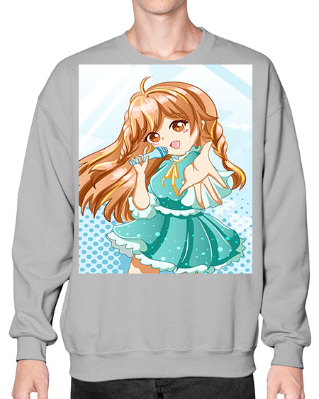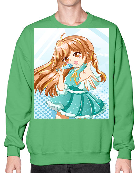 Cute and beautiful singer girl with green dress 163# - anime- Sweatshirt - Crew