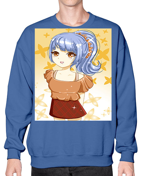 Cute and funny girl with blue hair 31# - anime- Sweatshirt - Crew