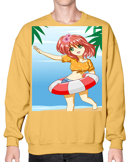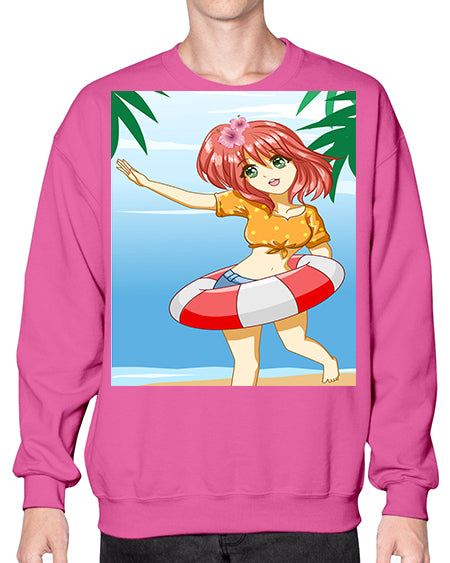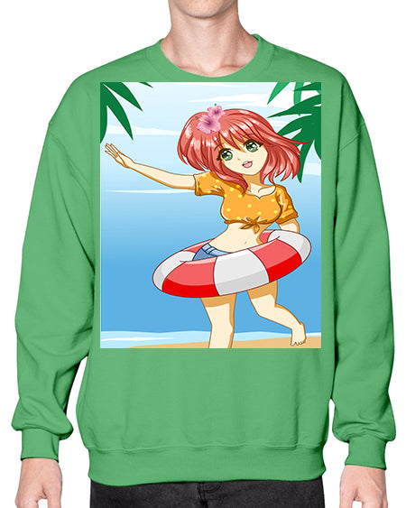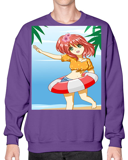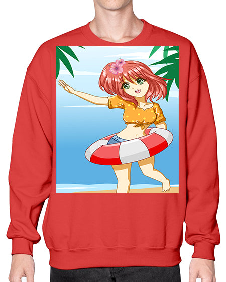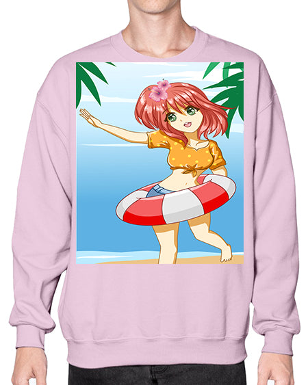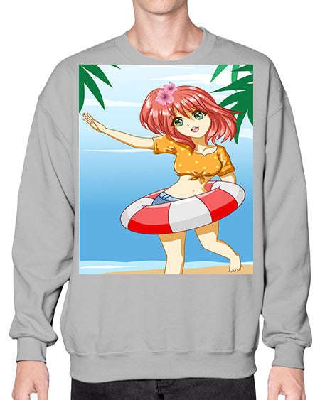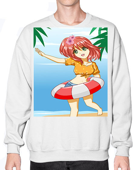 Cute and happy girl in beach with buoy in the summer 184# - anime- Sweatshirt - Crew