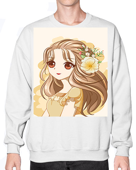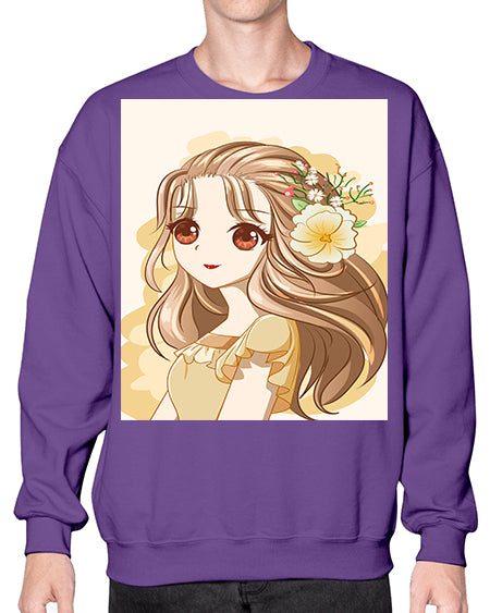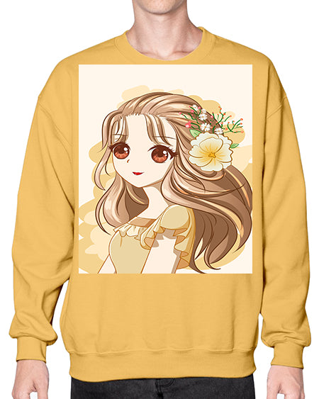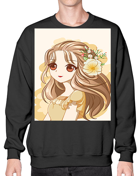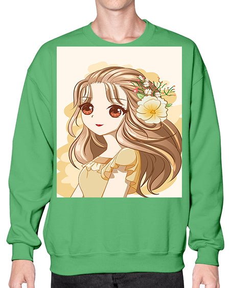 Cute and happy girl with flowers crown 57# - anime- Sweatshirt - Crew