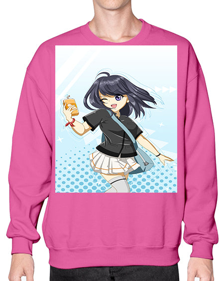 Cute and happy student girl with banana milk 4# - anime- Sweatshirt - Crew