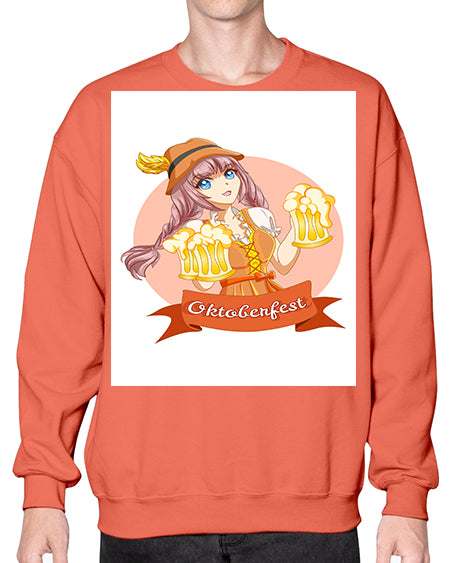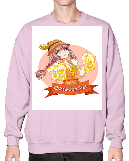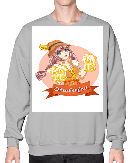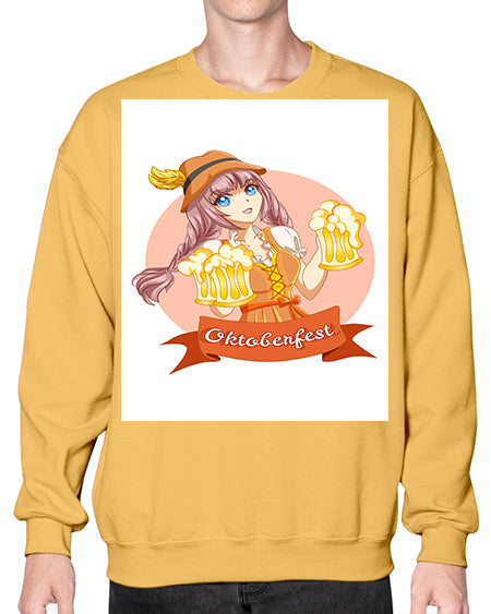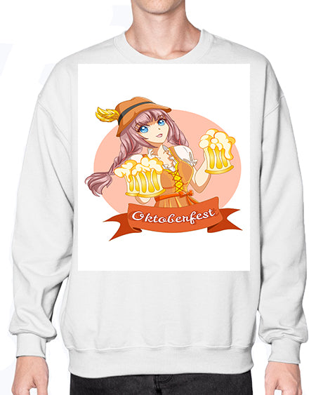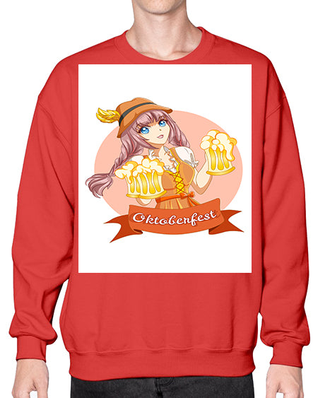 Cute and happy woman celebrating oktoberfest with beer 177# - anime- Sweatshirt - Crew