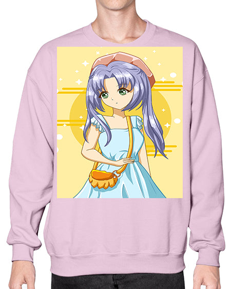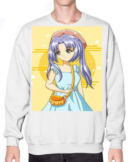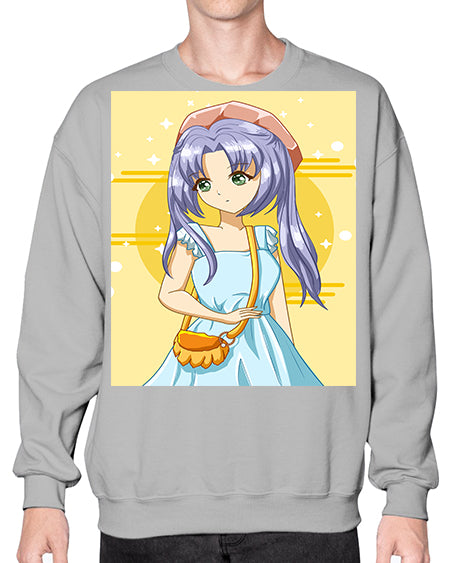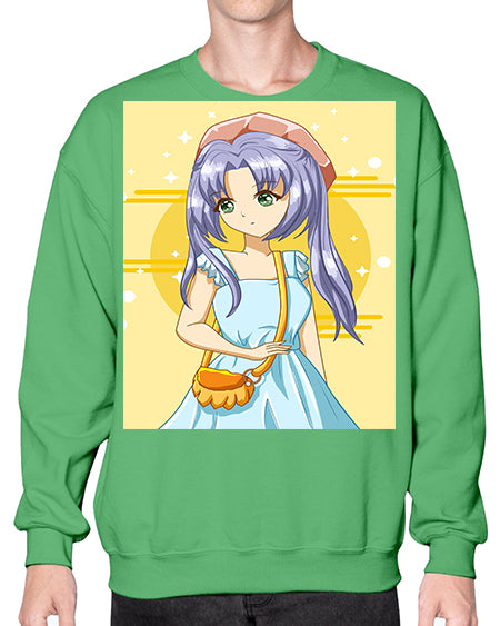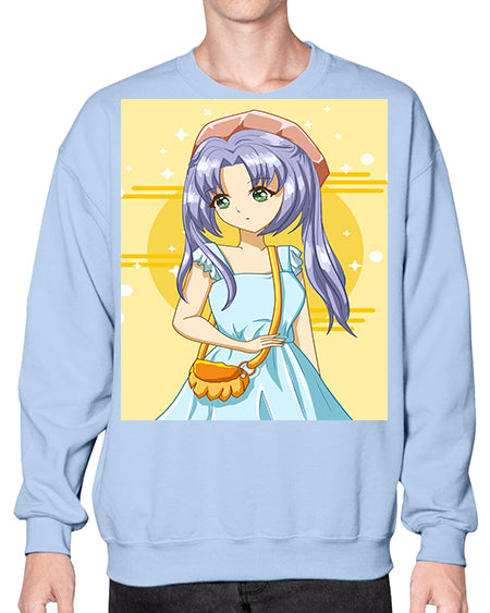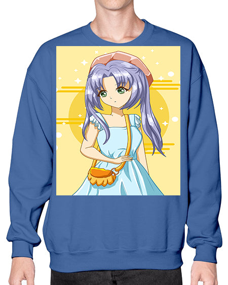 Cute and soft girl blue hair with blue dress in summer holiday 60# - anime- Sweatshirt - Crew