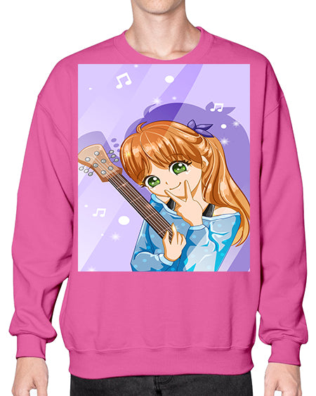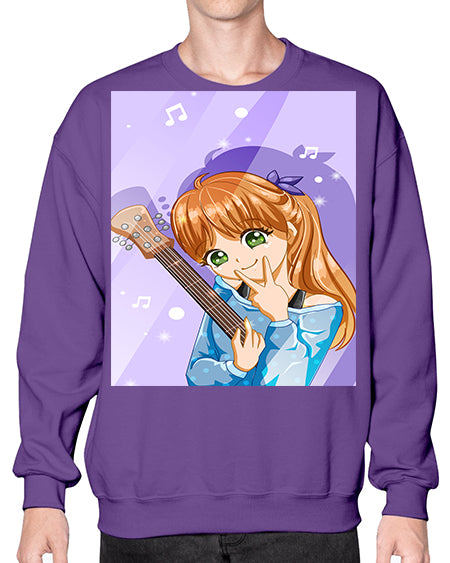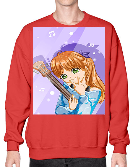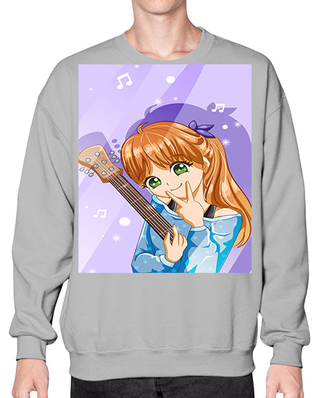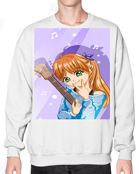 Cute and soft girl with guitar 53# - anime- Sweatshirt - Crew