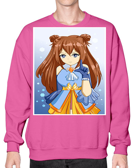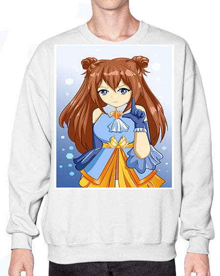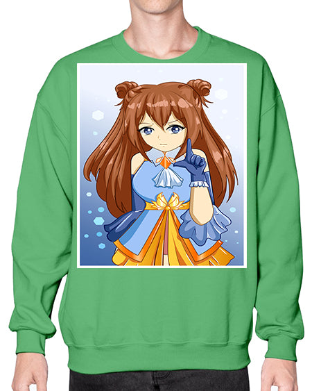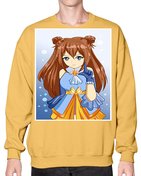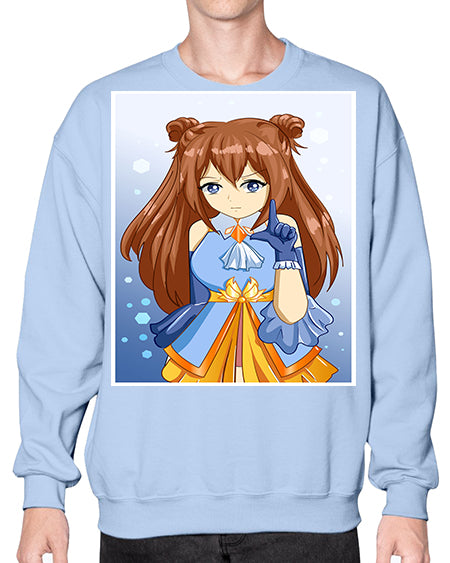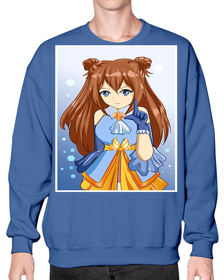 Cute little beautiful girl blue gold clothes cartoon 171# - anime- Sweatshirt - Crew