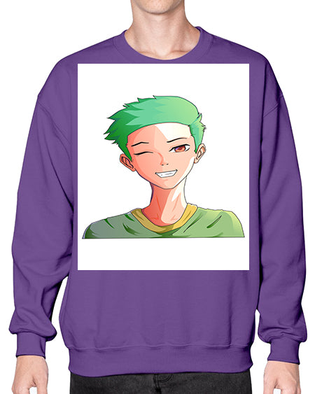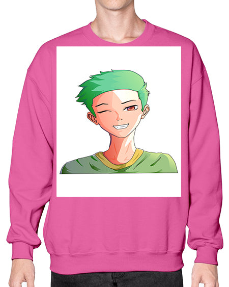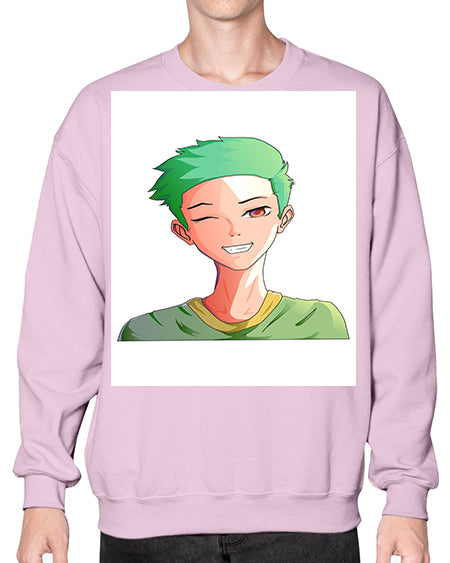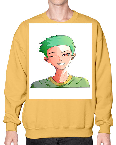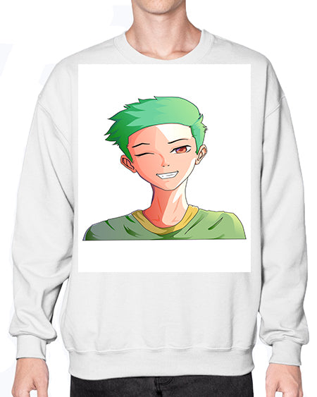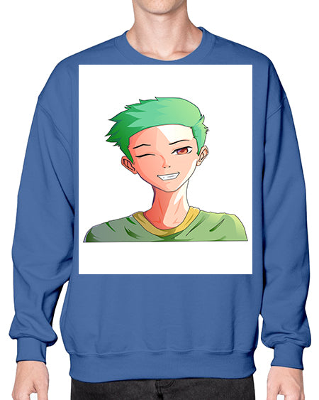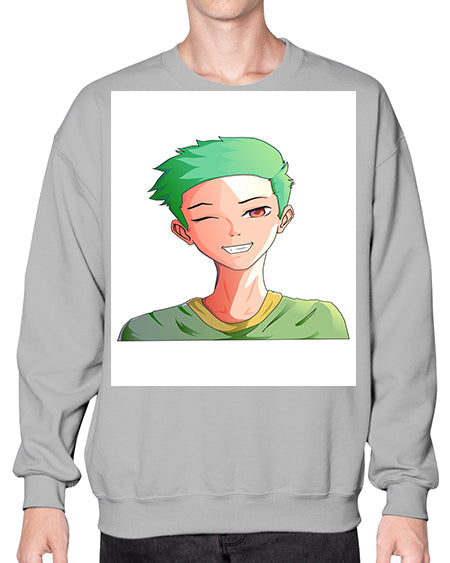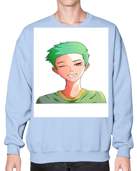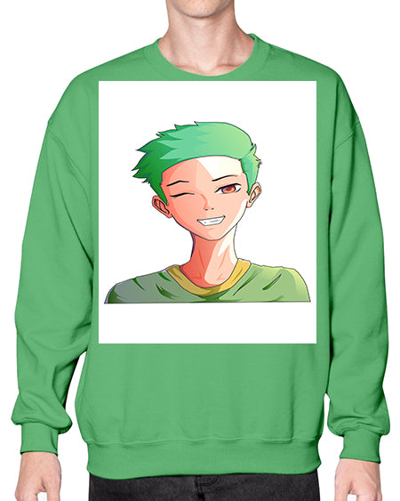 Handsome boy green hair wearing green shirt 35# - anime- Sweatshirt - Crew