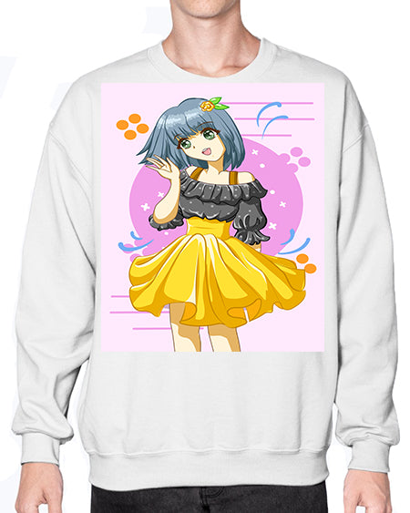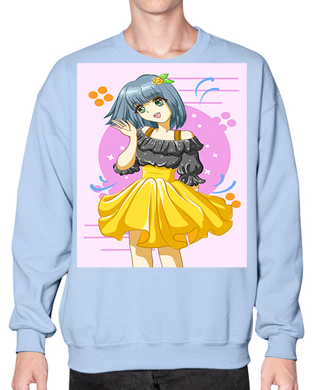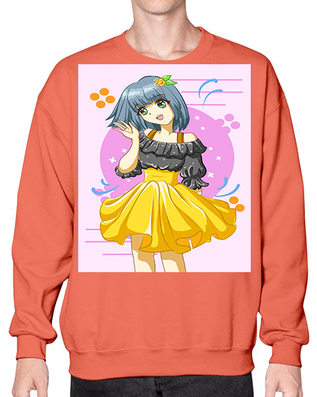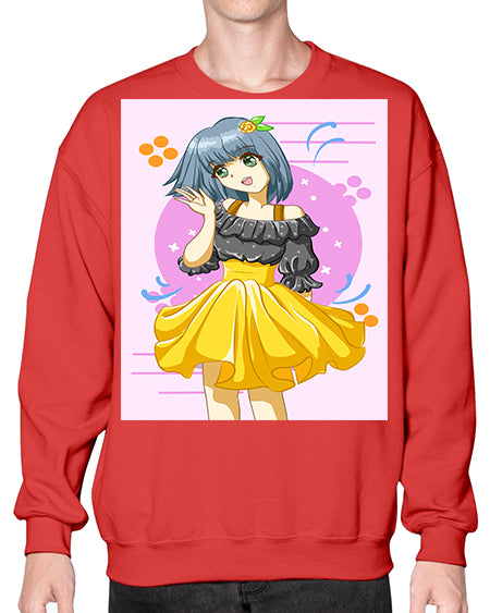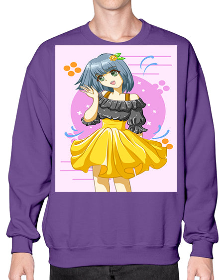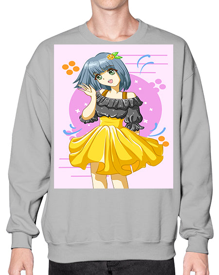 Happy and funny girl with black yellow dress in summer 41# - anime- Sweatshirt - Crew
