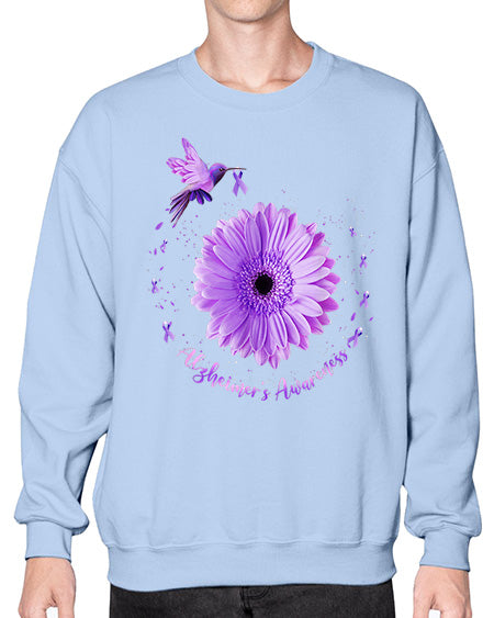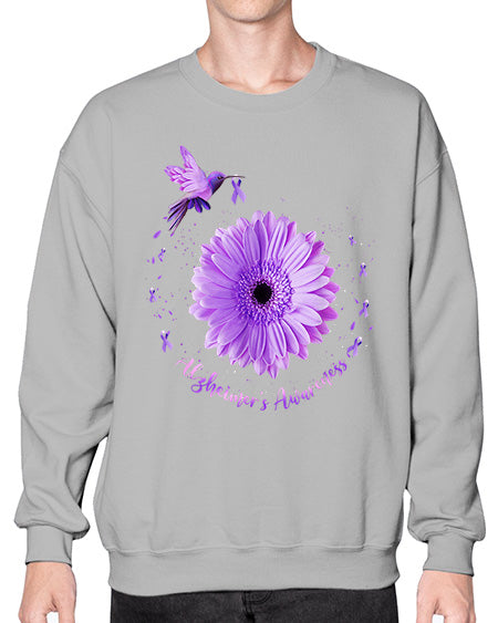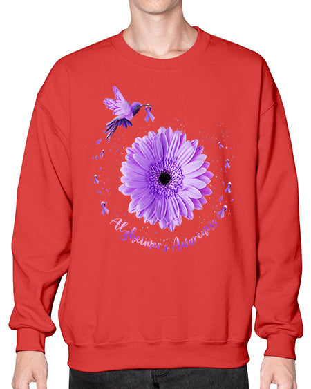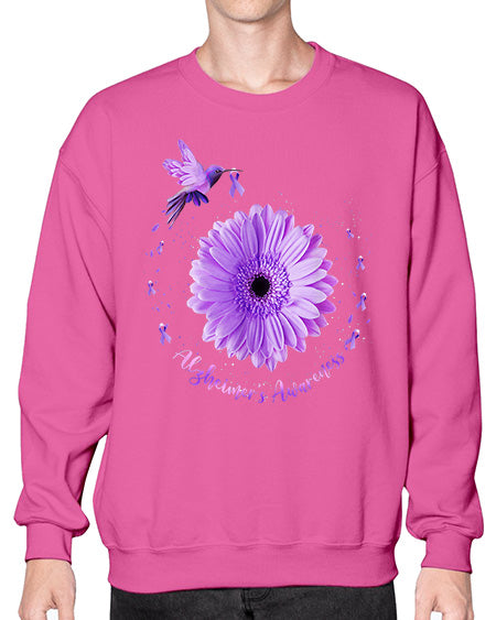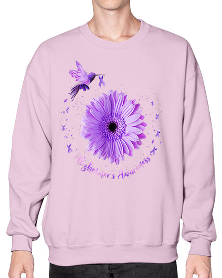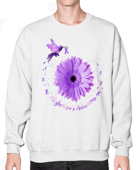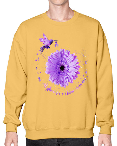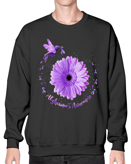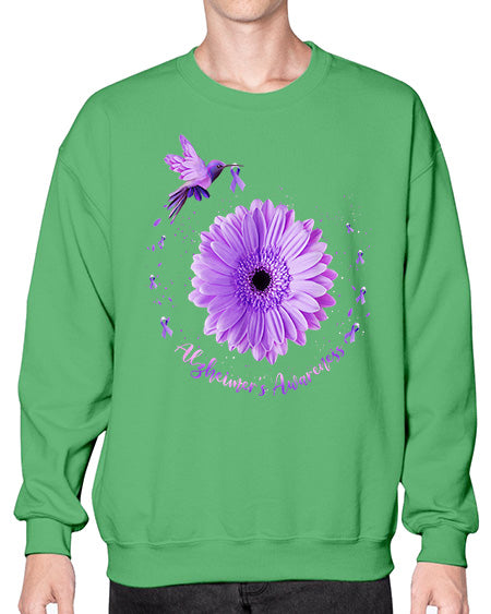 Hummingbird Sunflower Purple Ribbon Alzheimers Awareness 167# - alzheimers- Sweatshirt - Crew