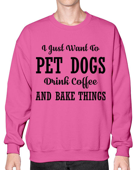 i just want to pet dogs drink coffee and bake things 163# - dogs- Sweatshirt - Crew