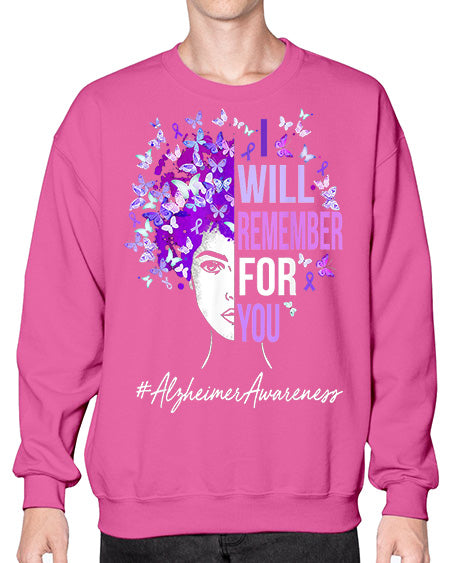 I Will Remember For You Alzheimer Awareness Womens Butterfly 180# - Sub - Crew