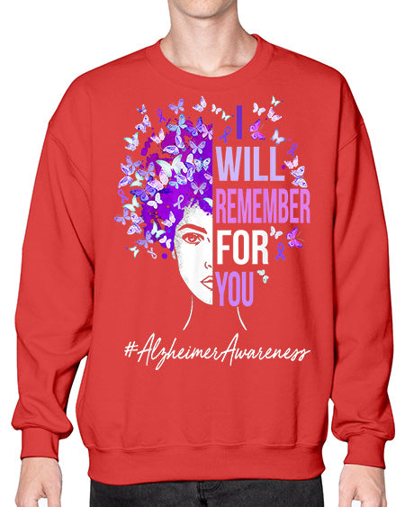 I Will Remember For You Alzheimer Awareness Womens Butterfly 180# - alzheimers- Sweatshirt - Crew