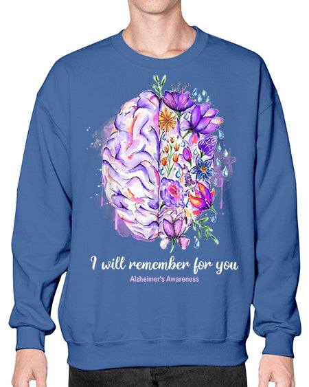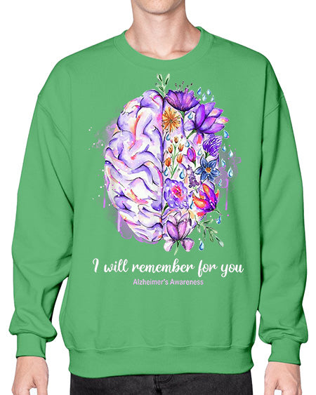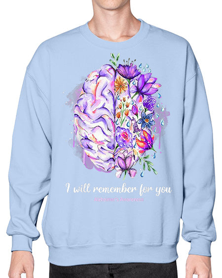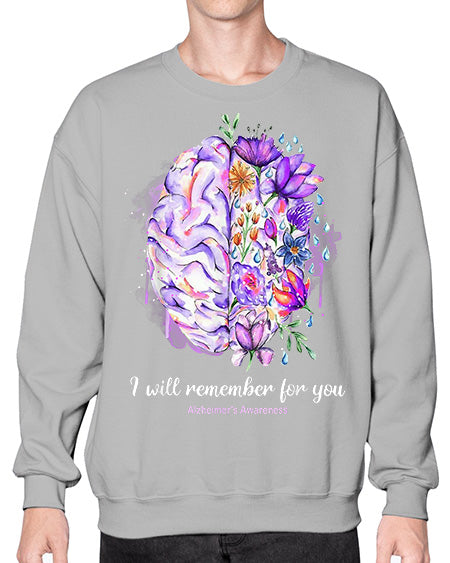 I Will Remember For You Brain Alzheimers Awareness 183# - alzheimers- Sweatshirt - Crew