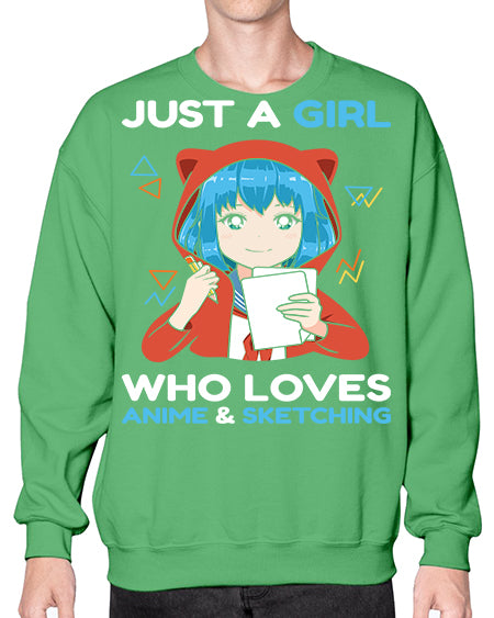 just a girl who loves anime and sketching259# - anime- Sweatshirt - Crew