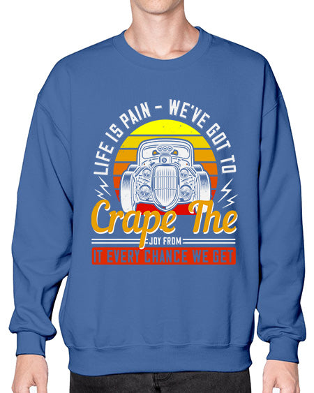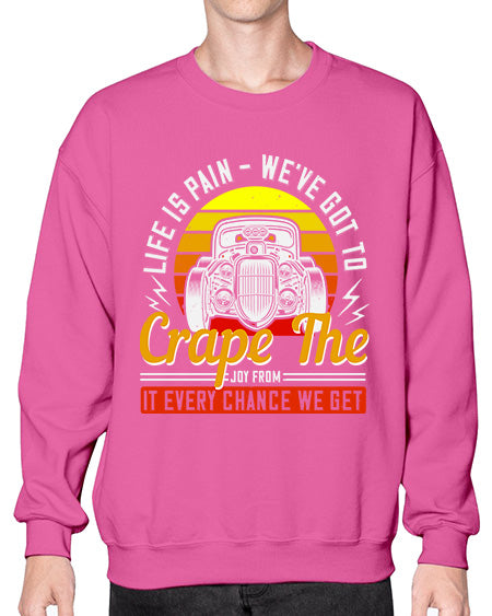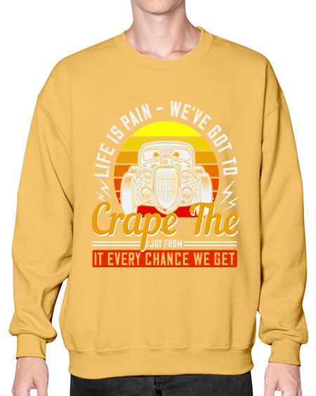 Life is pain weve got to scrape the joy from it every chance we get 42# - hot rod- Sweatshirt - Crew