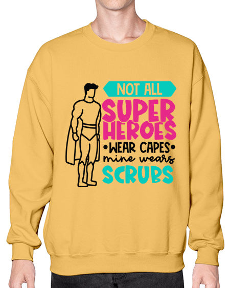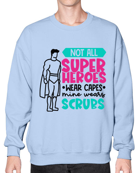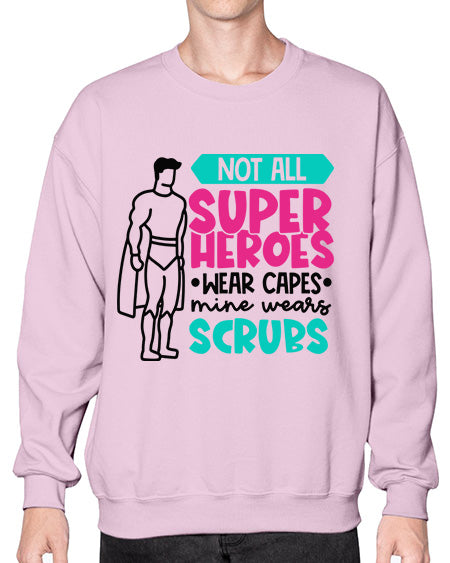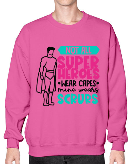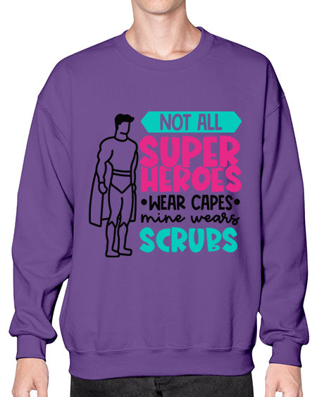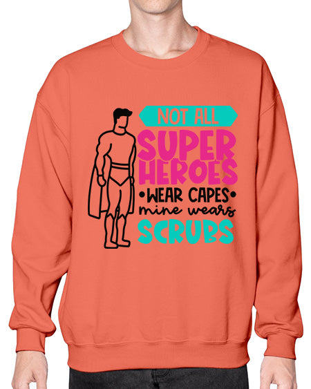 Not All Super Heroes Wear Capes Mine Wears Scrubs Style Style 1136# - nurse- Sweatshirt - Crew