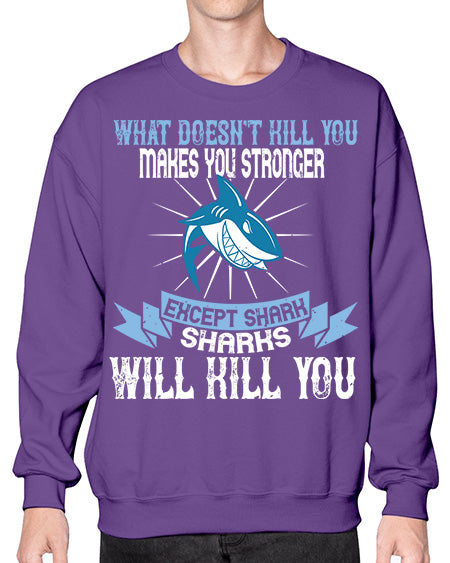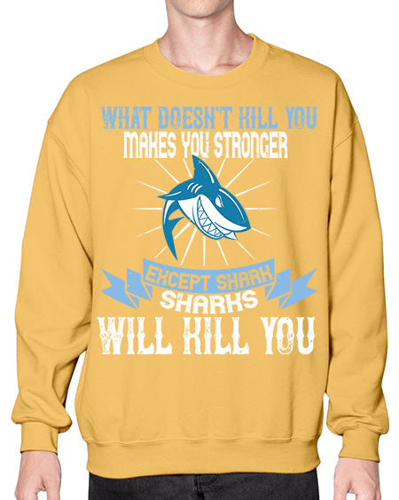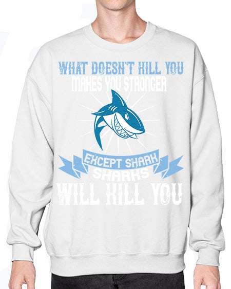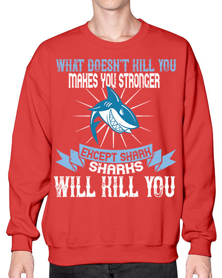 what doesnt kill you makes you stronger except shark sharks will kill you Style 4# - shark-fish- Sweatshirt - Crew