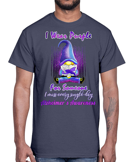 Alzheimers Awareness Products I Wear Purple Ribbon Gnome 22#- alzheimers- Cotton Tee