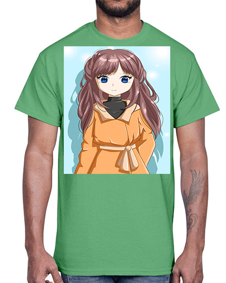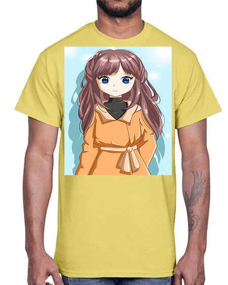 Beautiful and cool girl with yellow suit 73#- anime- Cotton Tee