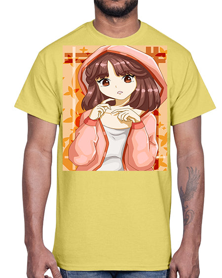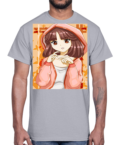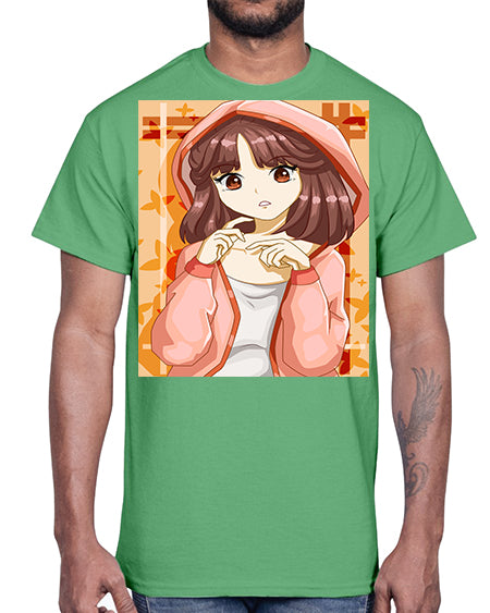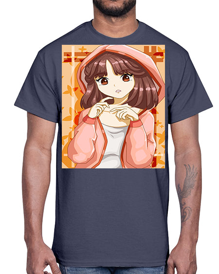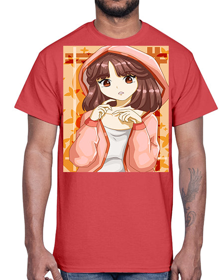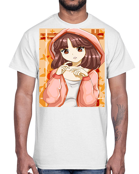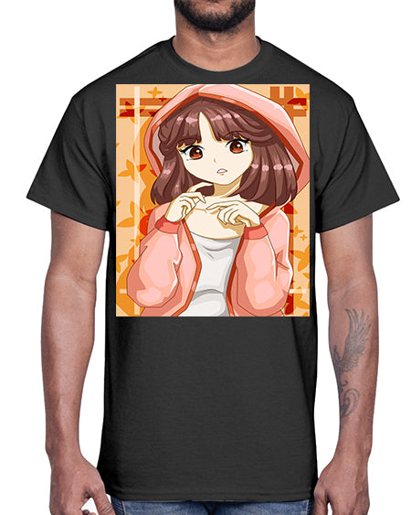 Beautiful and cute girl brown hair with jacket 81#- anime- Cotton Tee