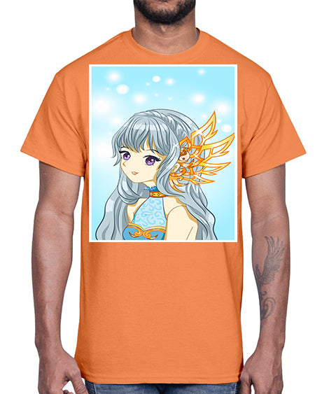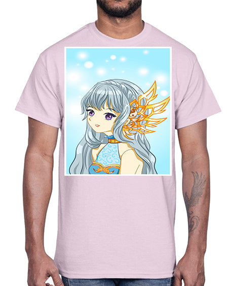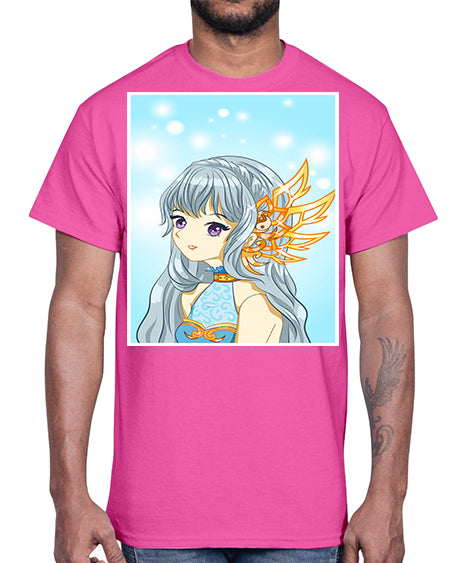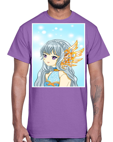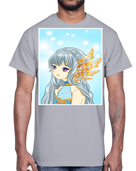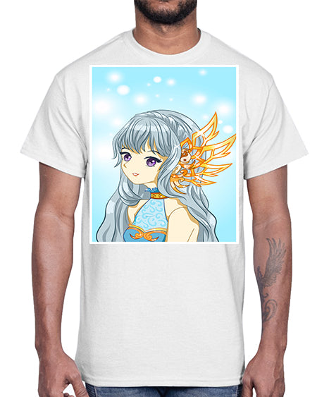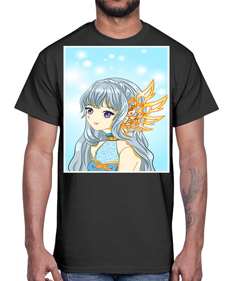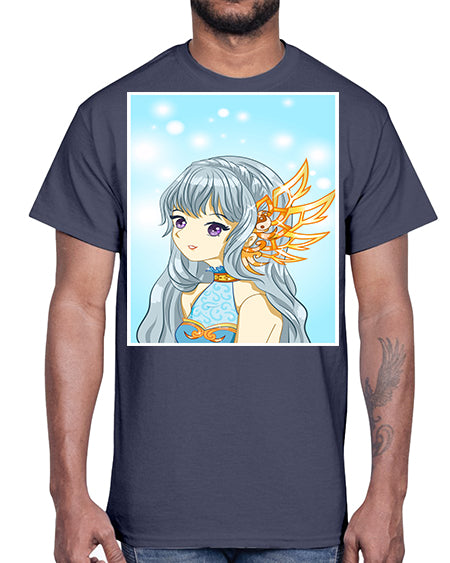 Beautiful and cute queen long blue hair with gold crown 27#- anime- Cotton Tee