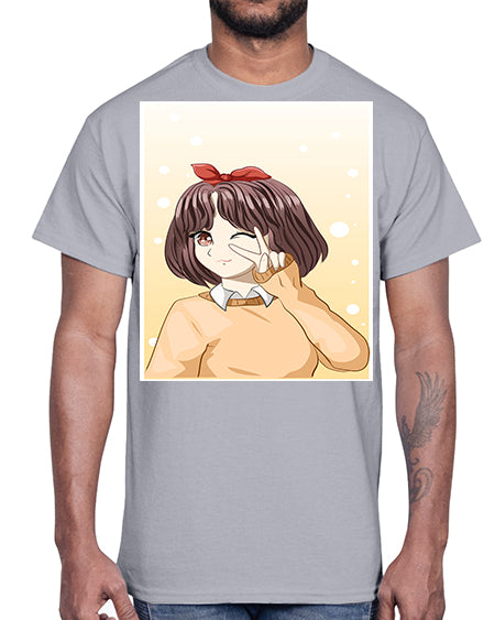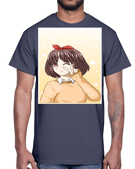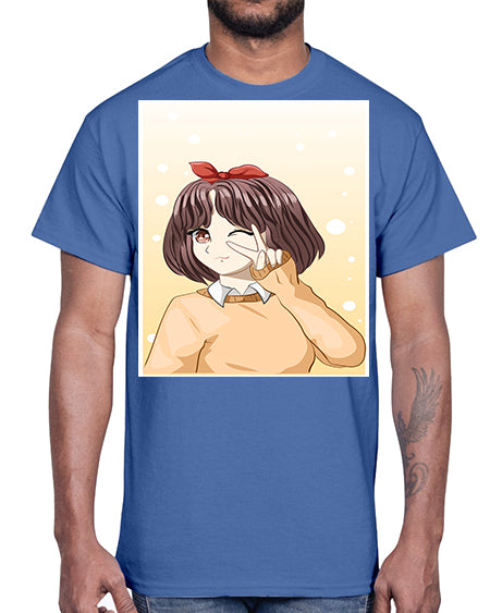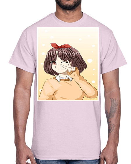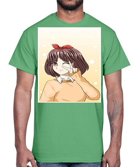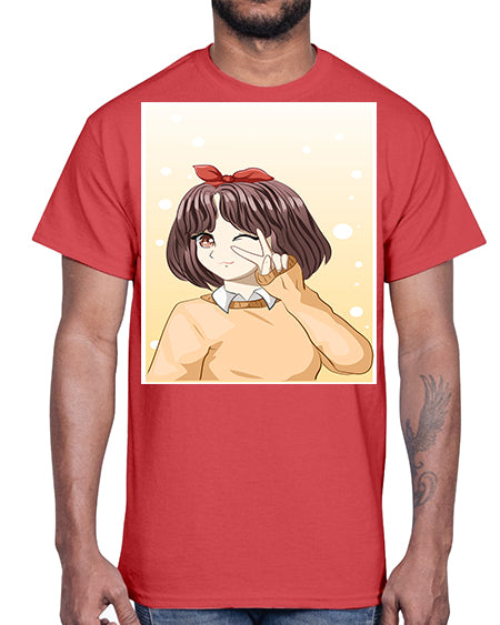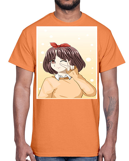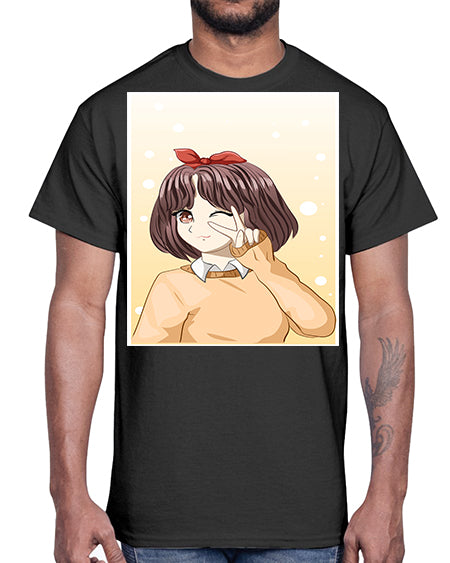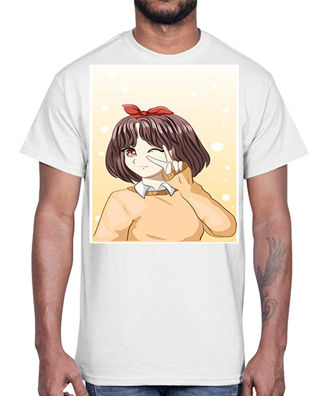 Beautiful and happy girl brown short hair with cheers hand 86#- anime- Cotton Tee