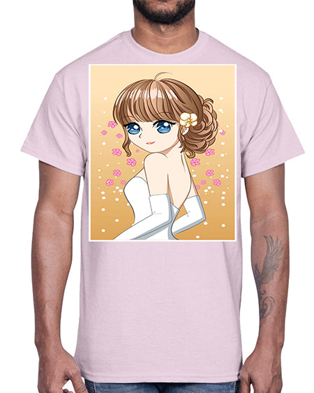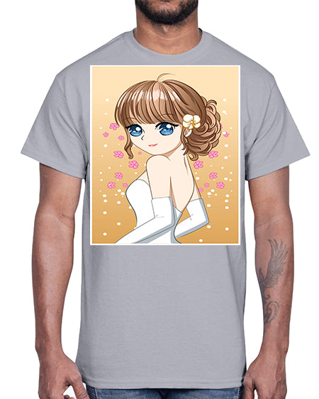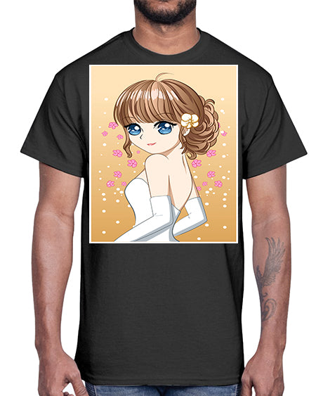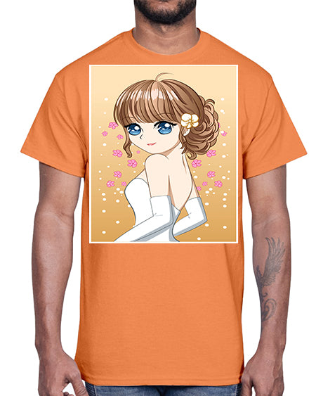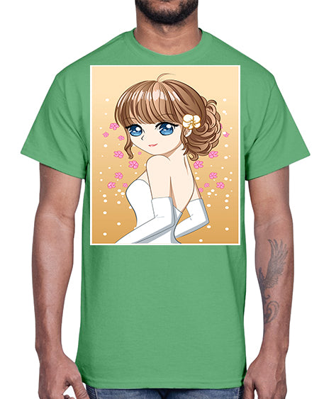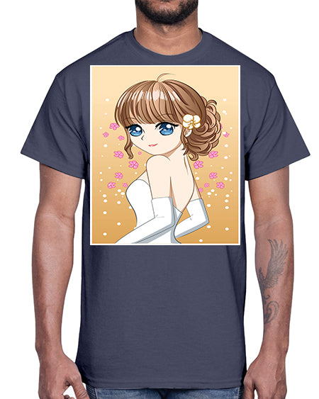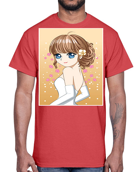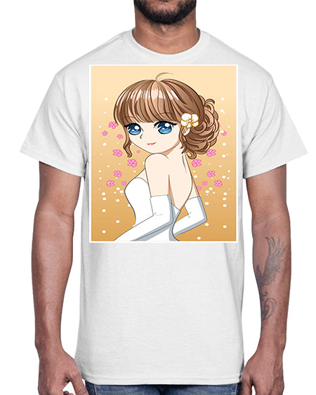 Beautiful and happy girl wearing wedding dress 84#- anime- Cotton Tee