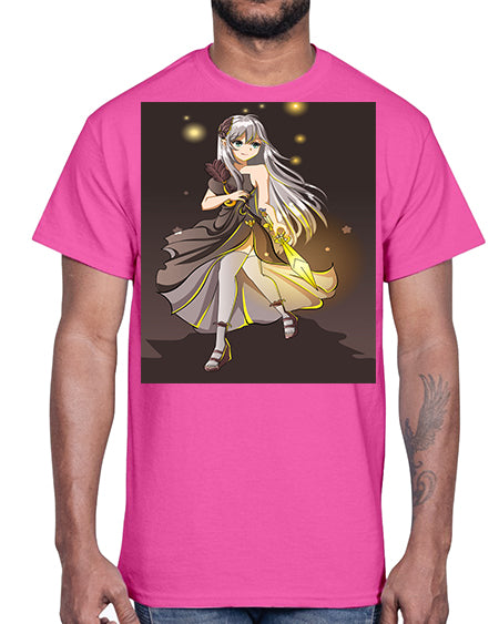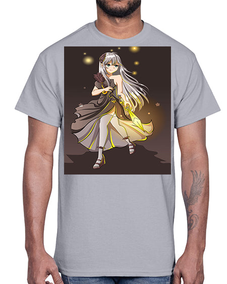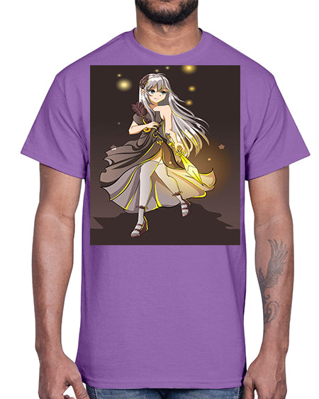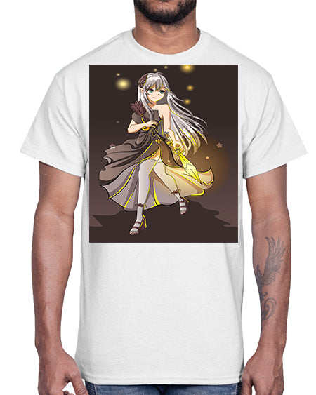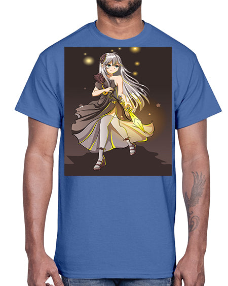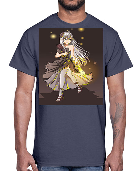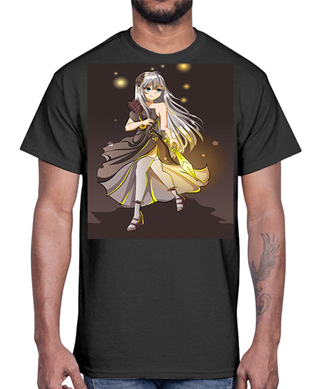 Beautiful girl with black dress and sword game 129#- anime- Cotton Tee