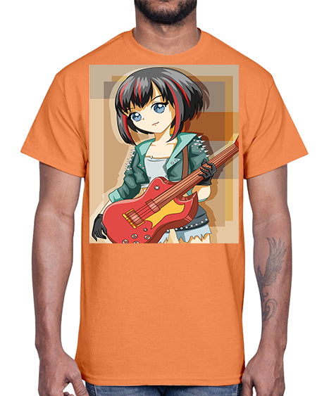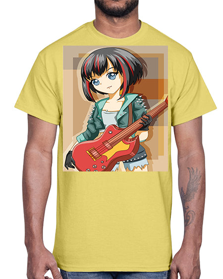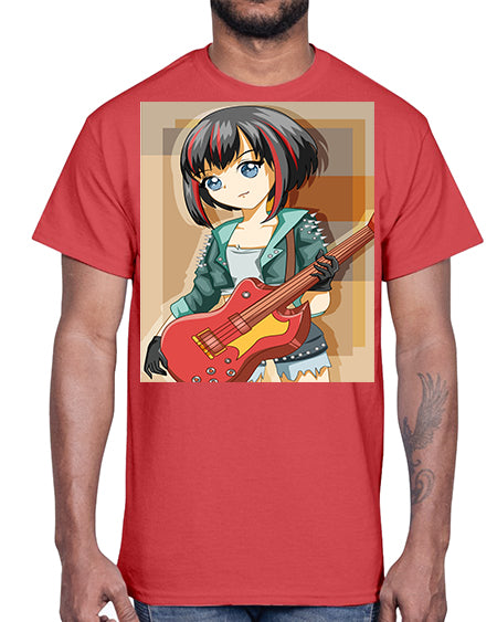 Beautiful rock girl with bass guitar perform 173#- anime- Cotton Tee
