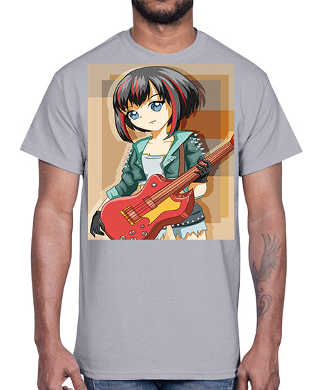 google-site-verification=jVrHOkW2AsgL_ozwUikqFQE6-Ke6U43Z8aLcUbXT5TE Beautiful rock girl with bass guitar perform 173#- anime- Cotton Tee – Tshirt Unlimited