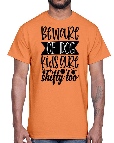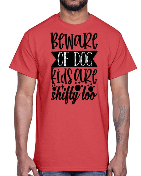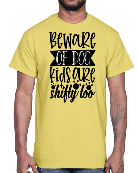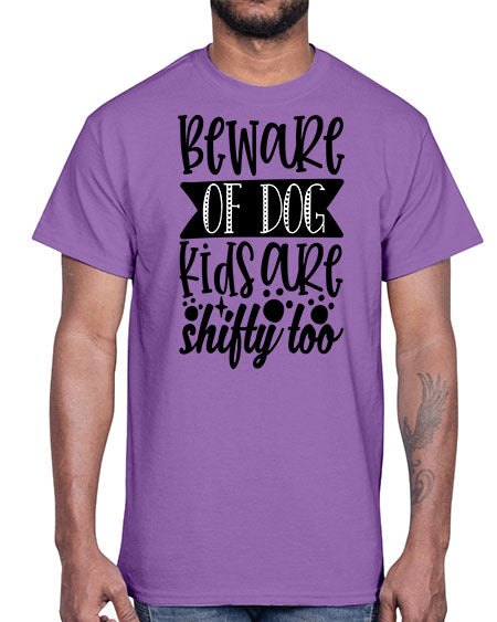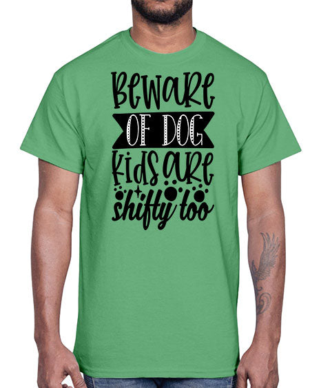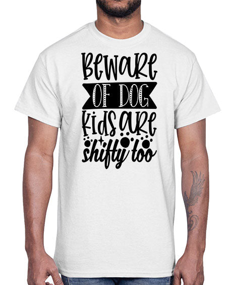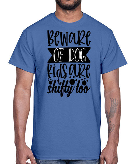 beware of dog kids are shifty too 59#- dogs- Cotton Tee