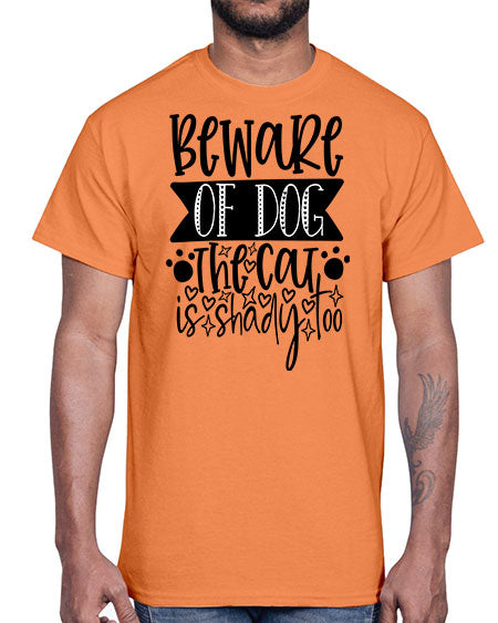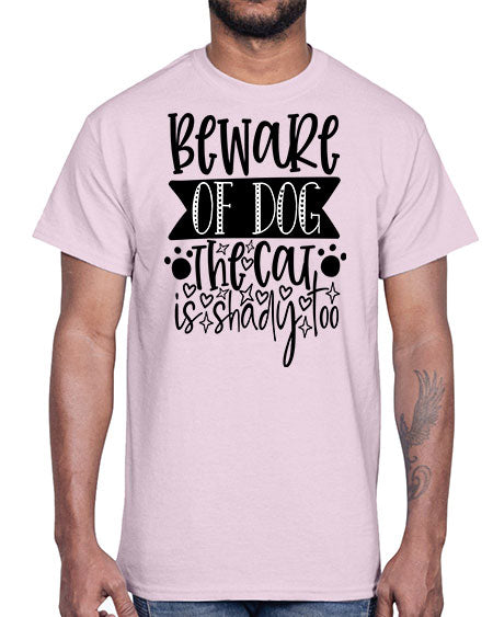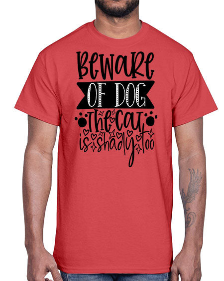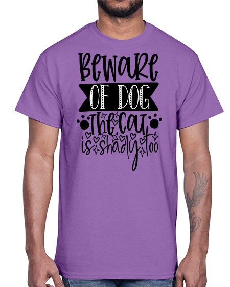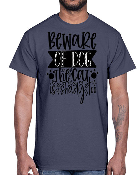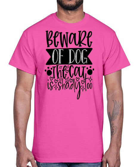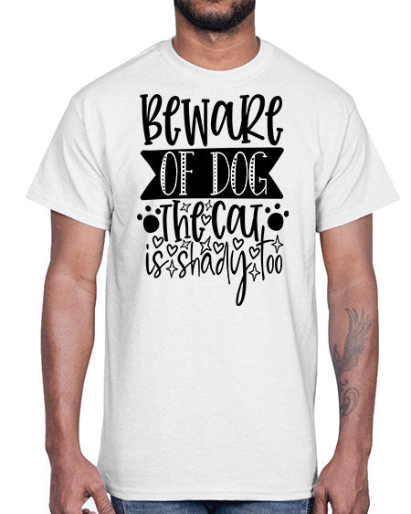 beware of dog the cat is shady too 60#- dogs- Cotton Tee