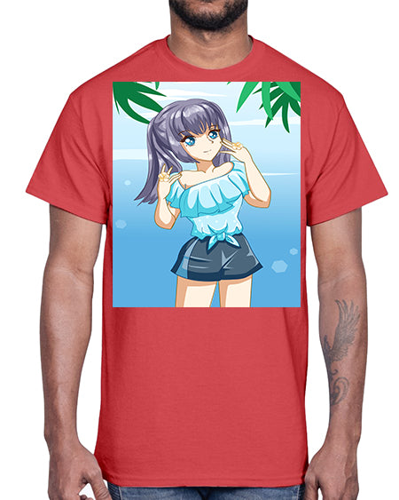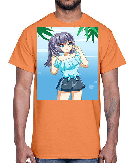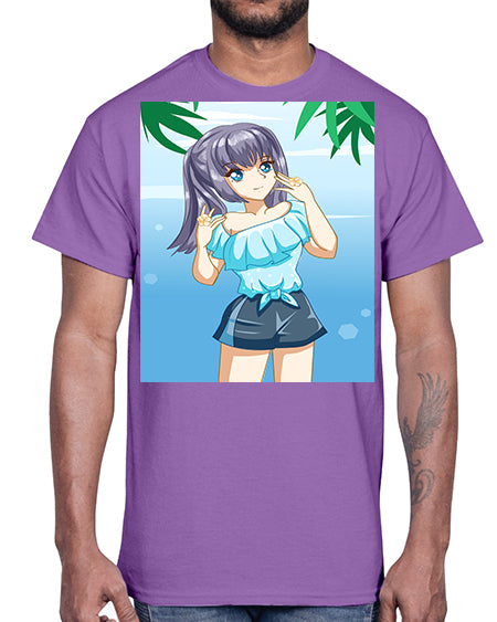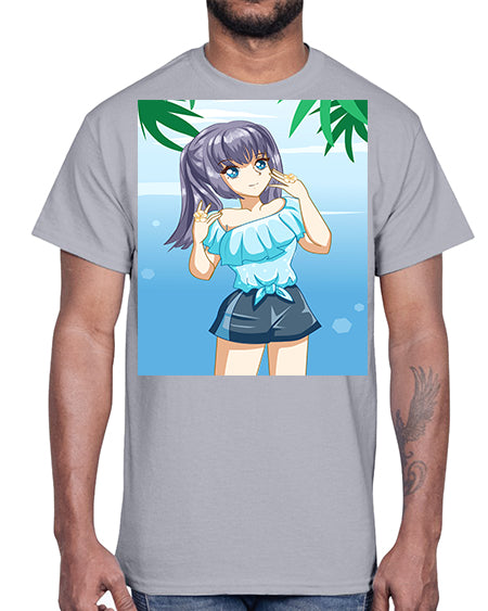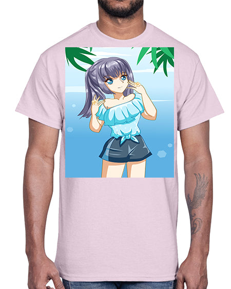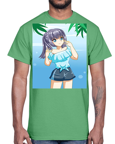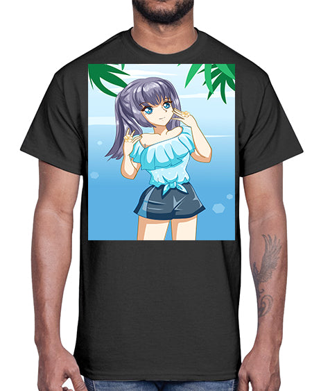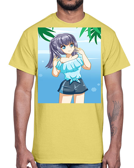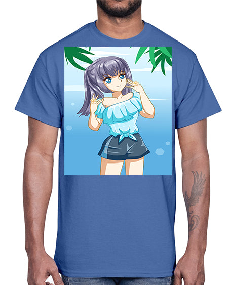 Cute and happy girl with blue shirt in summer 125#- anime- Cotton Tee