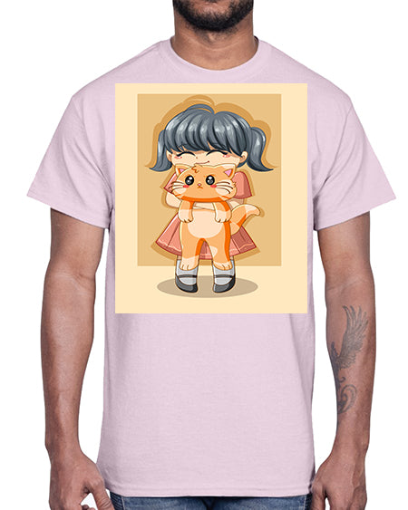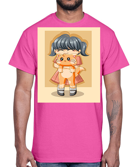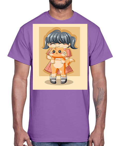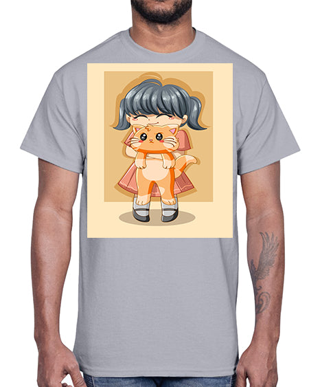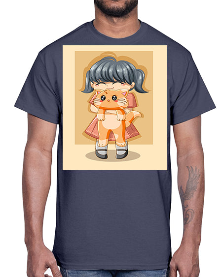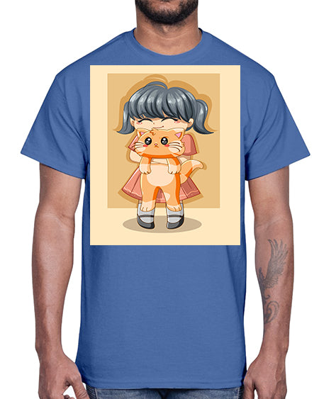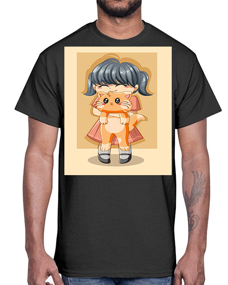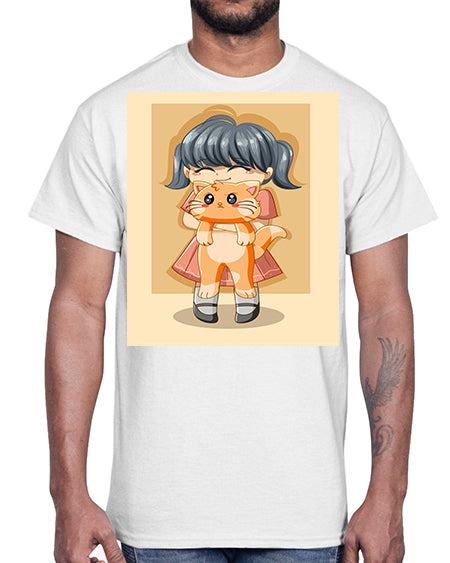 Cute girl with cat animal day 135#- anime- Cotton Tee