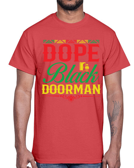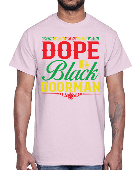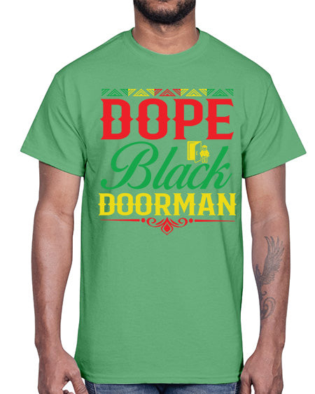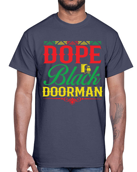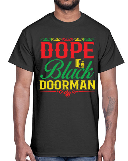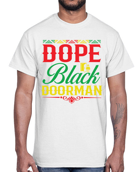dope black doorman 15#- black words and phrases- Cotton Tee