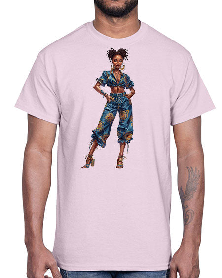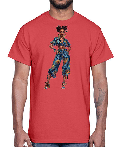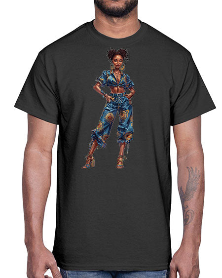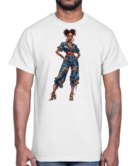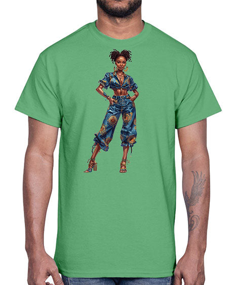 fashion girl in indigo 42#- fashion- Cotton Tee